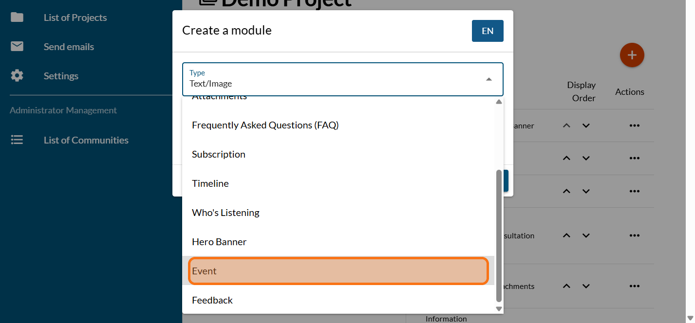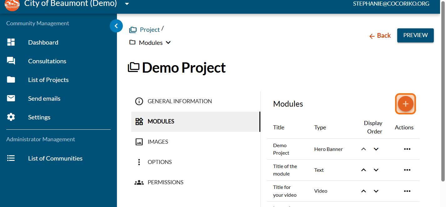 Click on the PLUS sign to add a new module