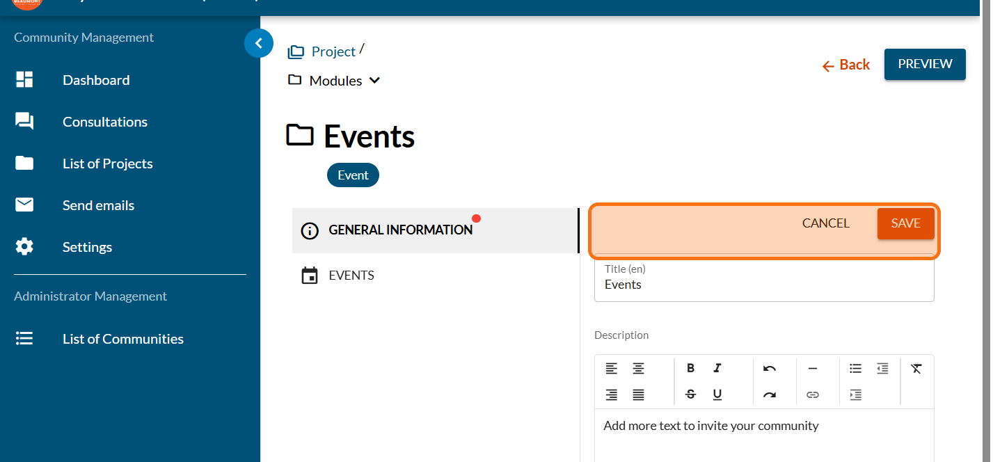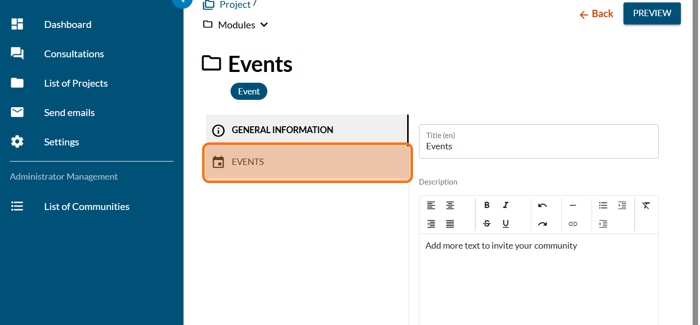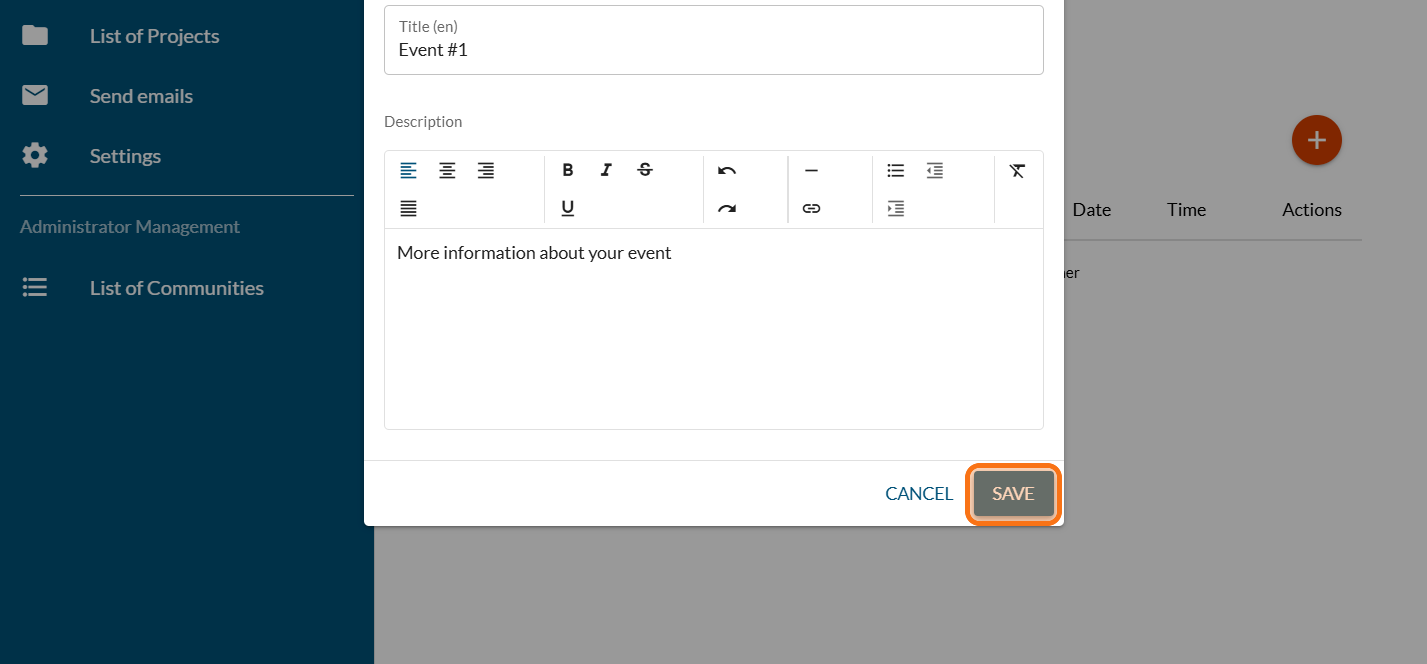 Invite your community to events related to your project, and you can direct them to another platform for registration.