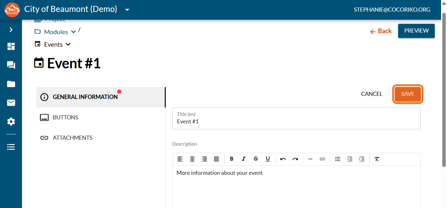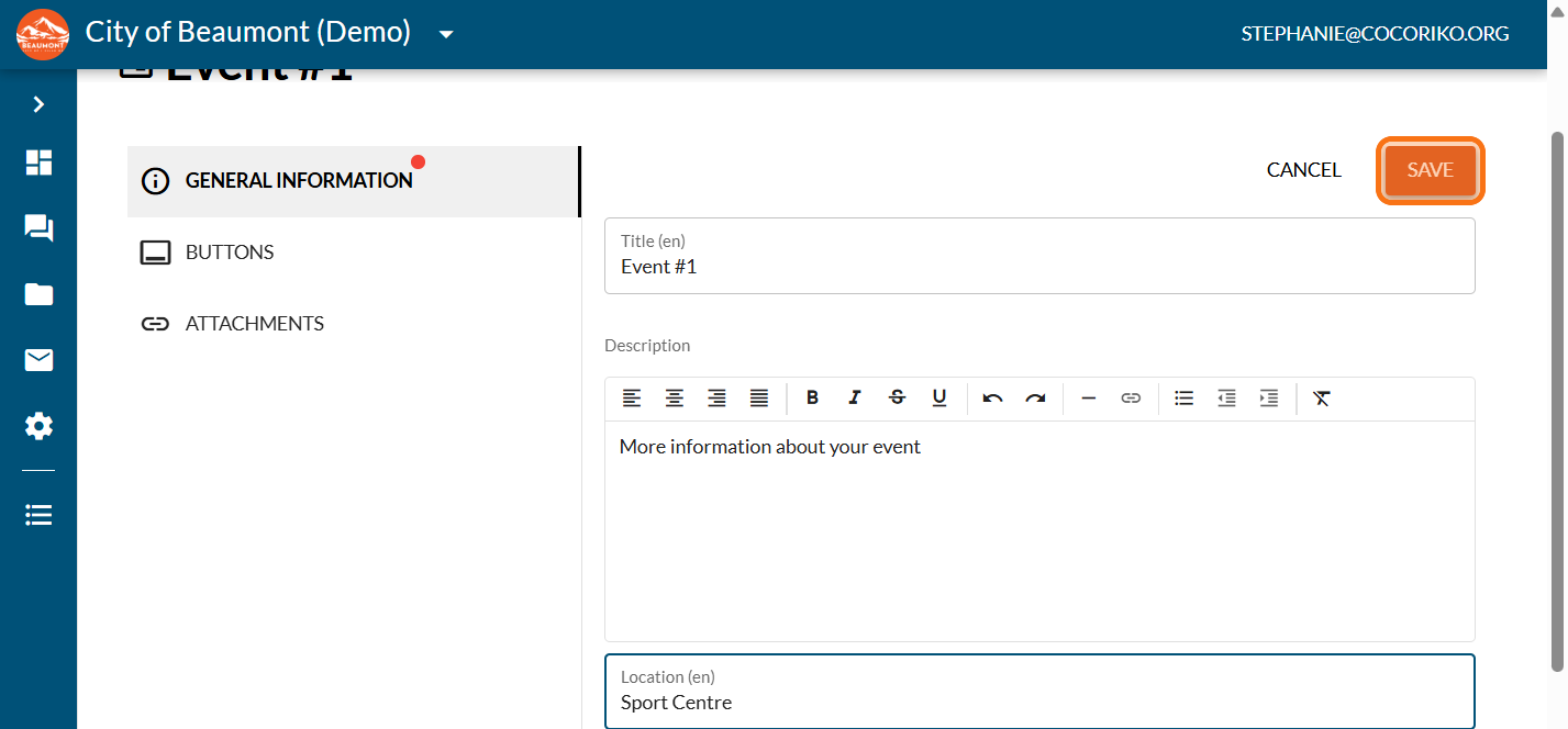 Click on "Published" if you want your event to show on the page