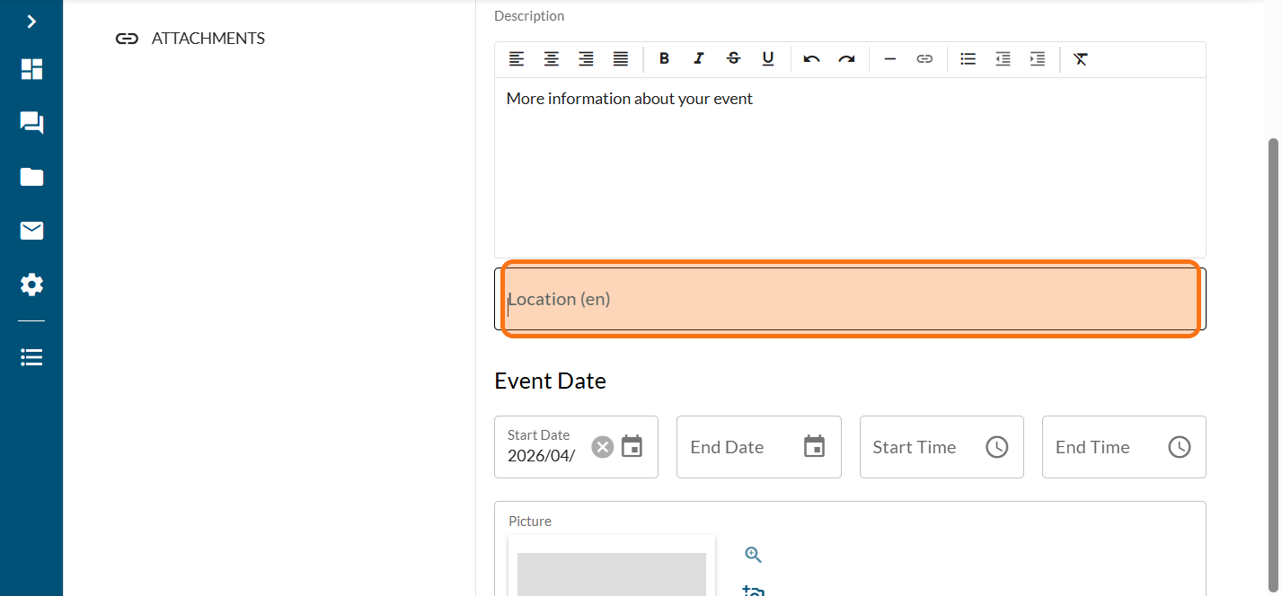 Enter details for your event