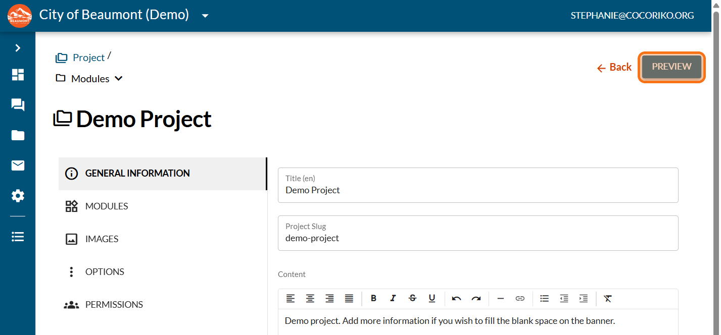 Preview your project with your new module (modern theme)