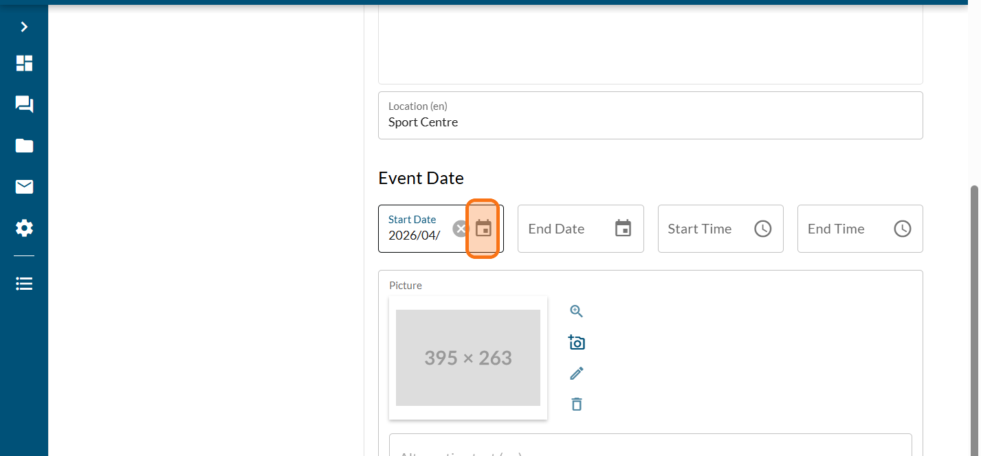 Enter the start and end date also the start and end time (optional)