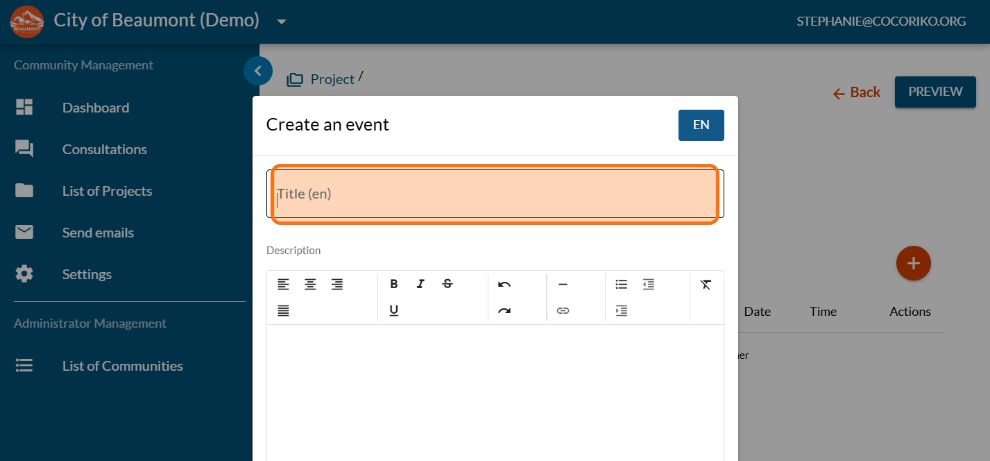Enter the title of your event