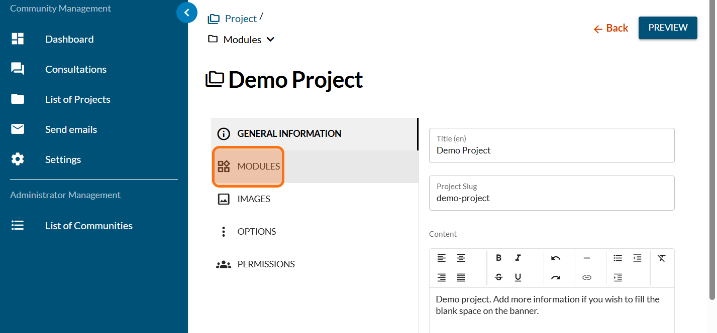 Click on "MODULES"