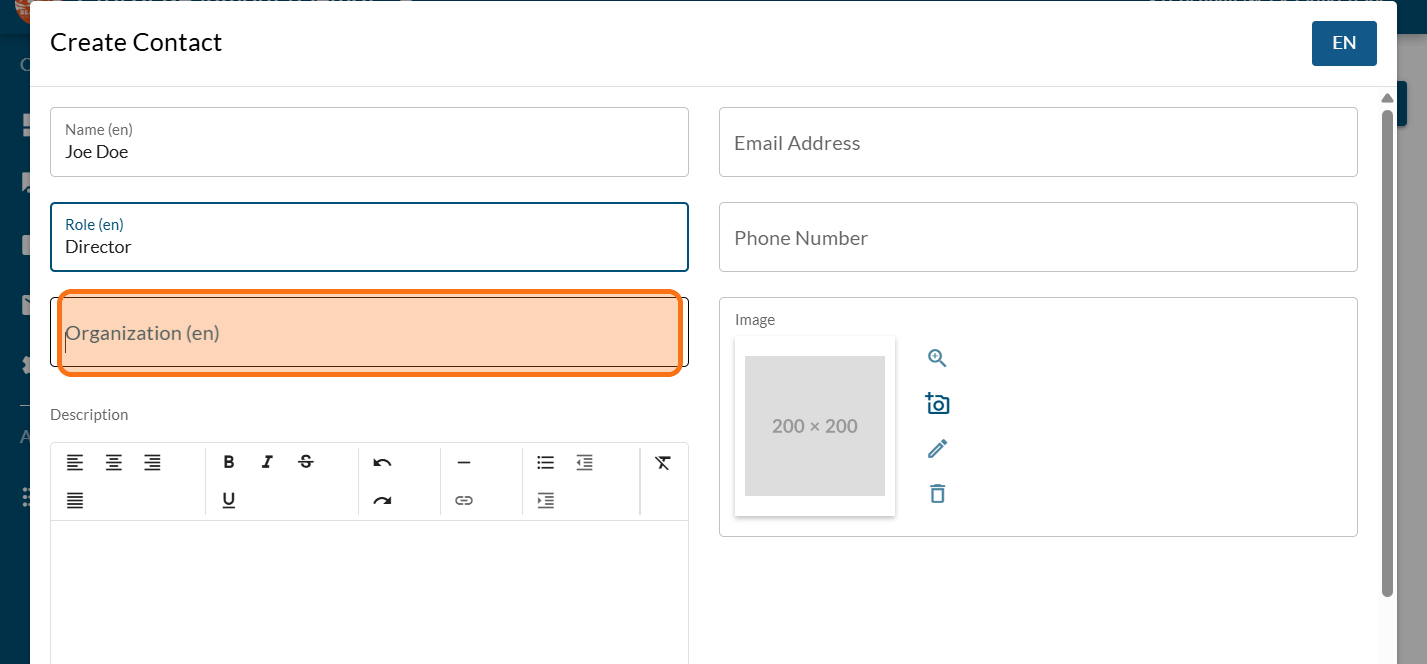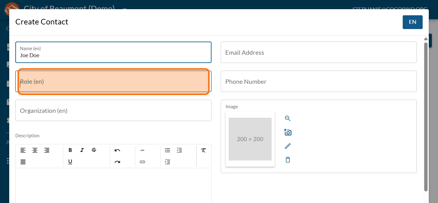Enter the role (mandatory)