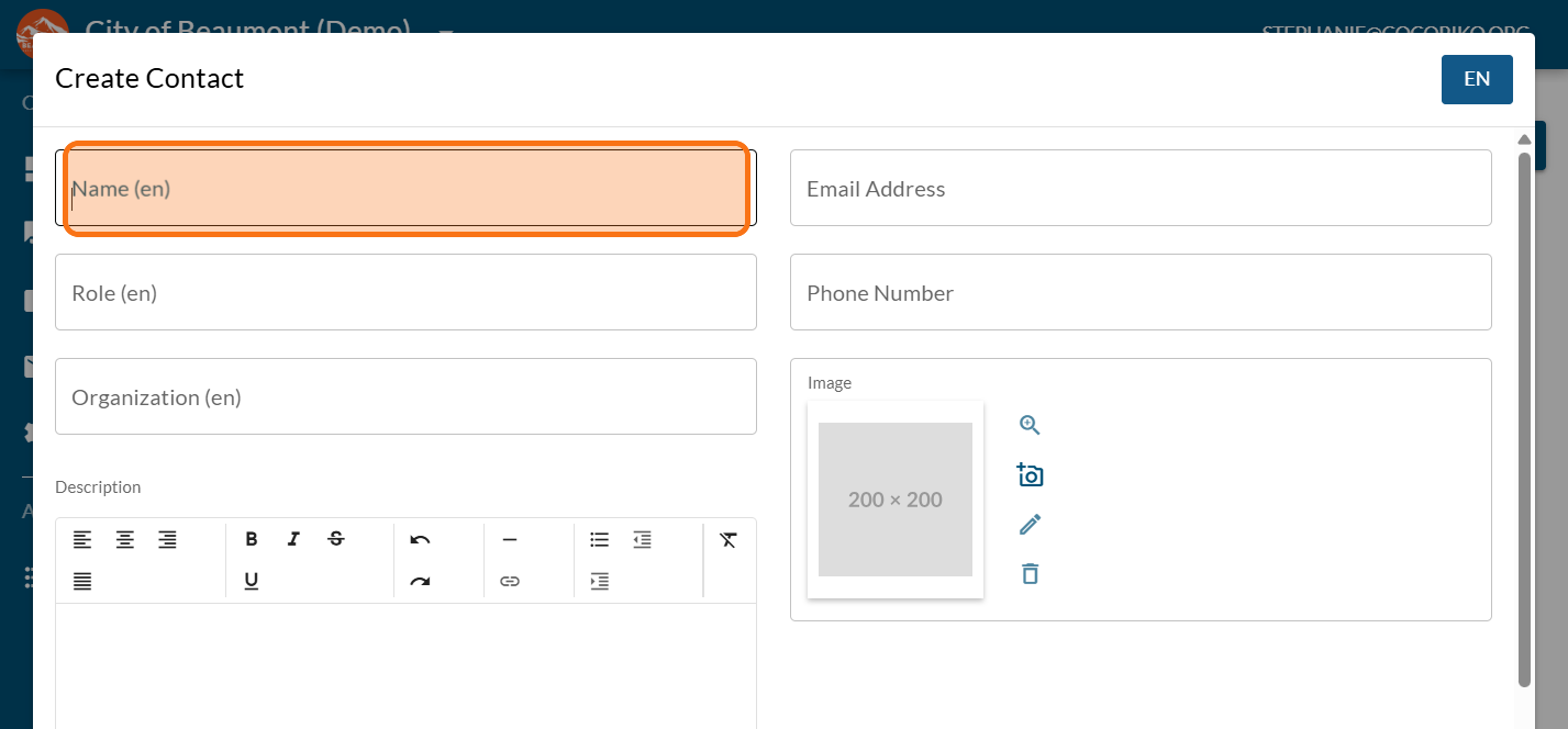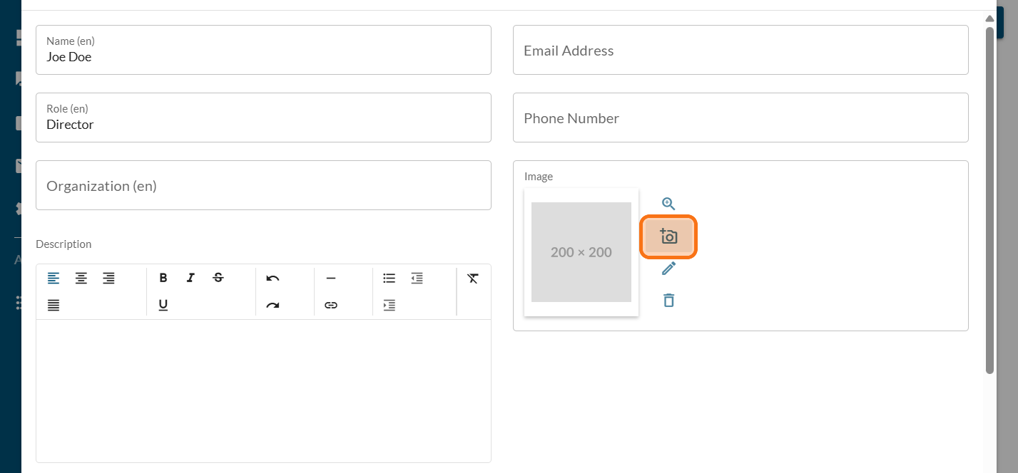 Click on the camera icon to add a picture (optional)