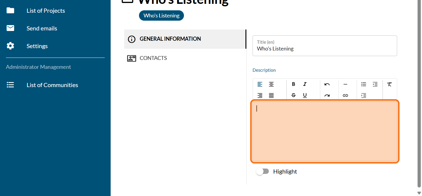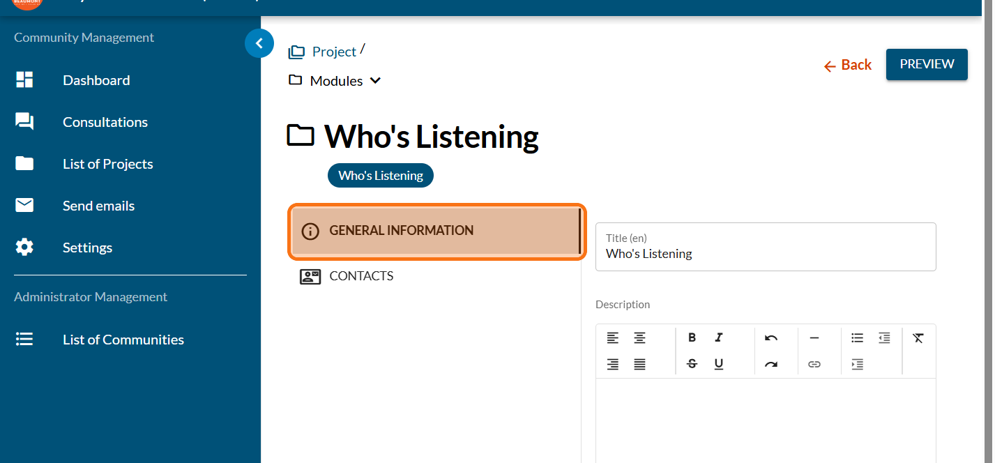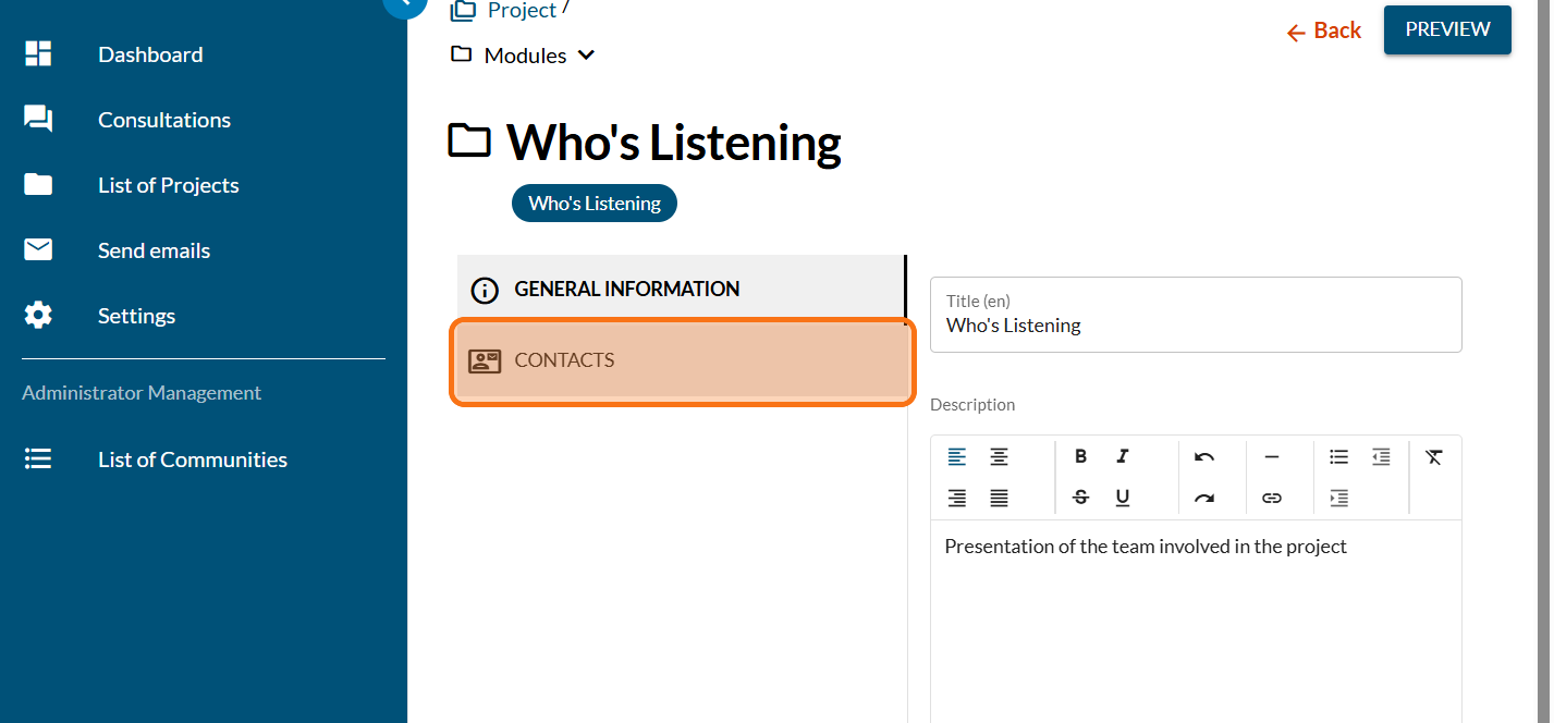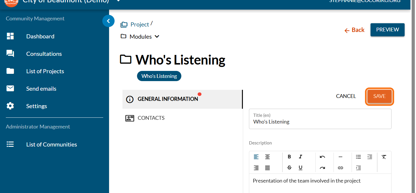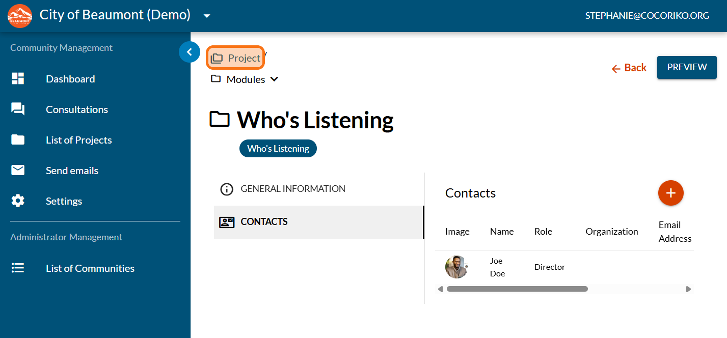 Let your community know who is involved in this project and how to get in touch with them.