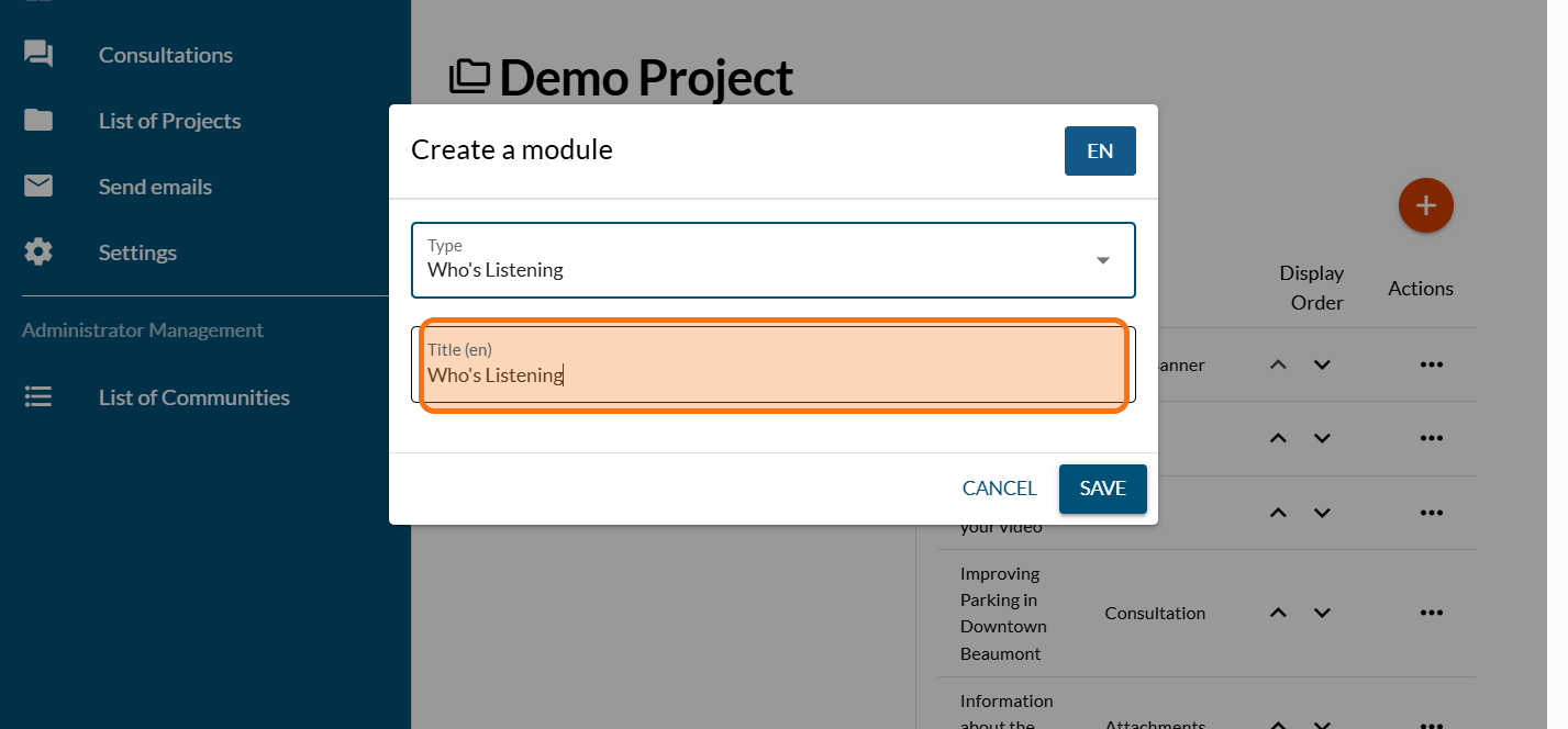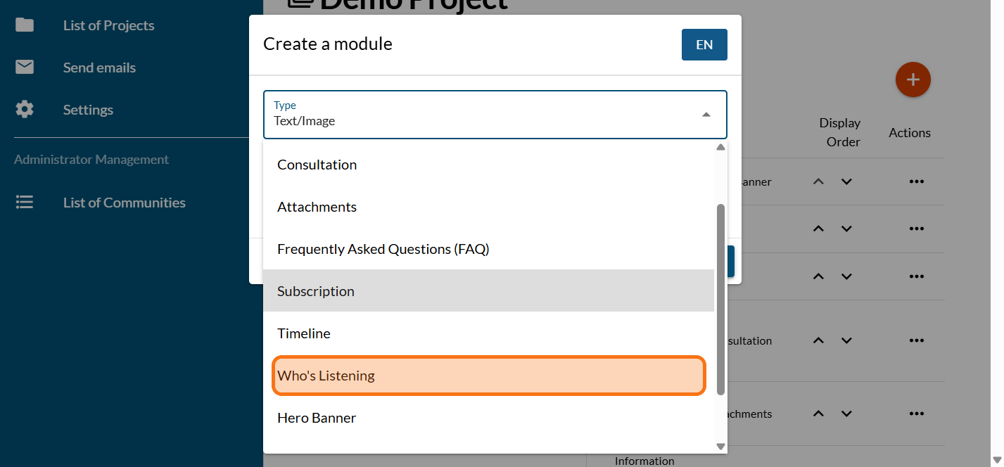 Click on the PLUS sign to add a new module