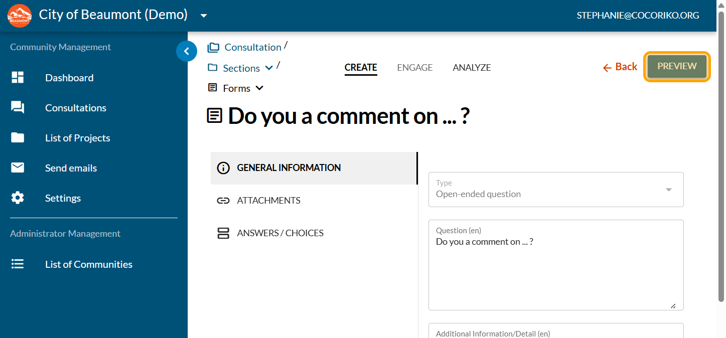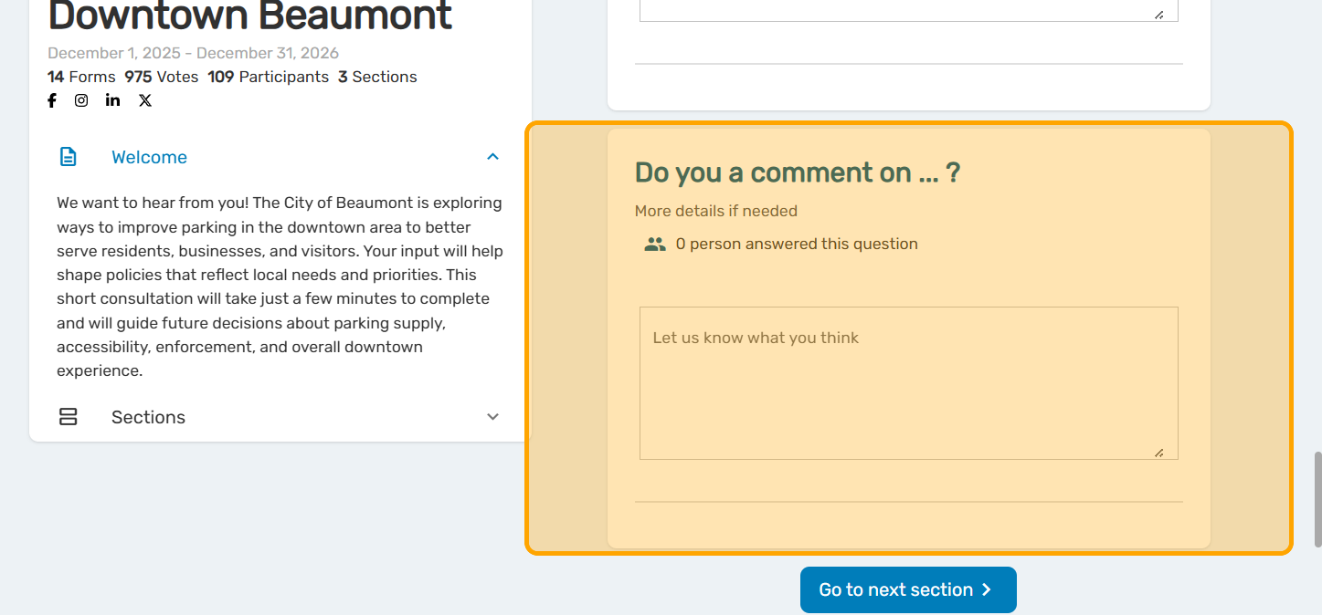 The open ended question is a space available for your participants to express themselves freely. Responses are confidential: they are not visible to other participants and are not linked to the person's name or email address.