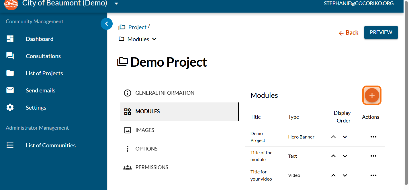 Click on the PLUS sign to add a new module