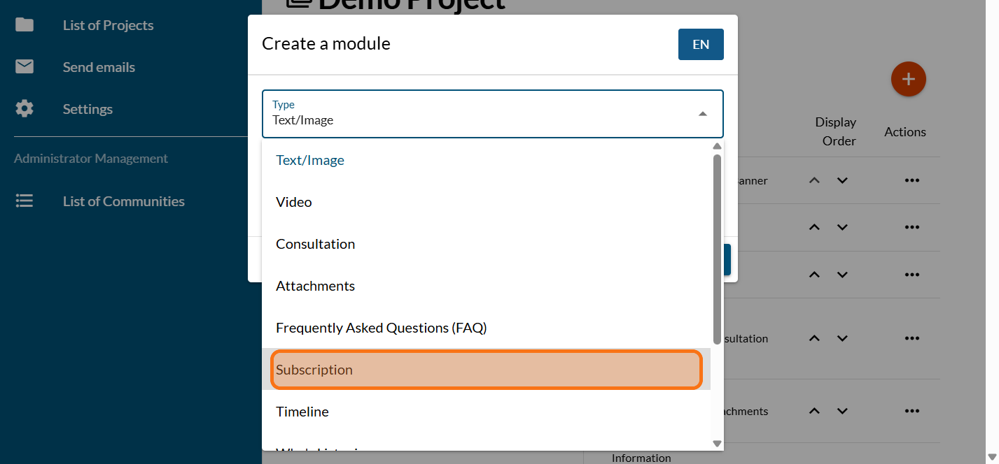 Preview your subscription module (modern theme)