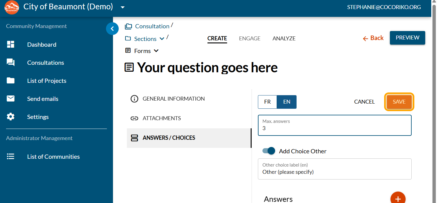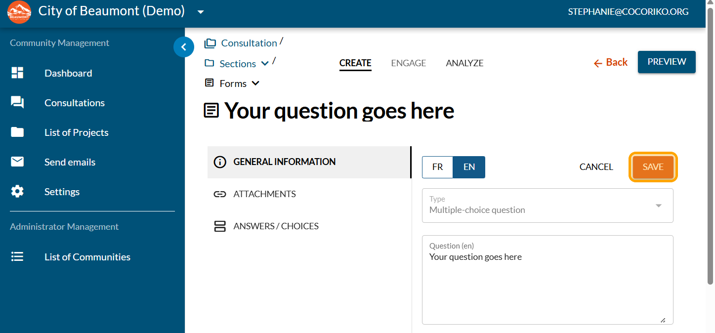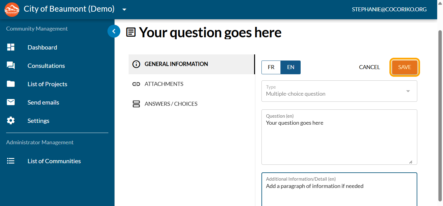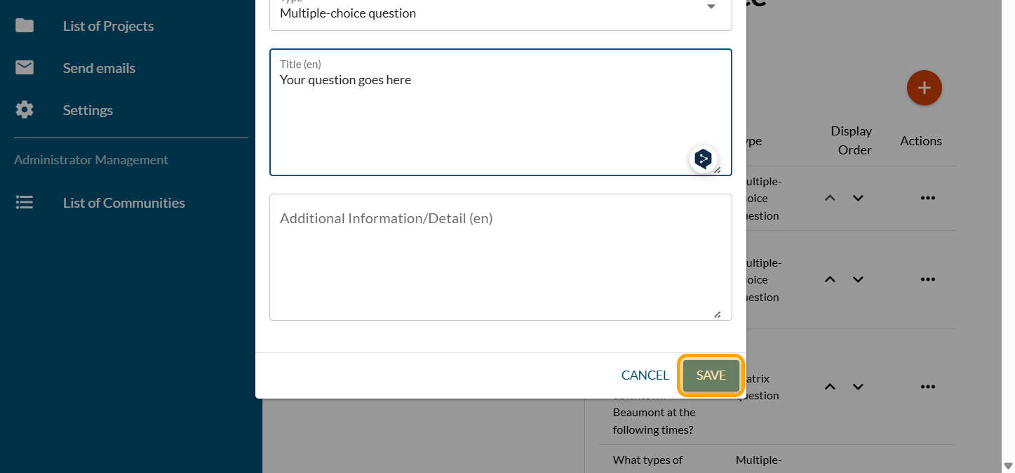 Enter your question. Click on "SAVE"