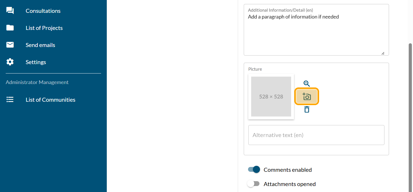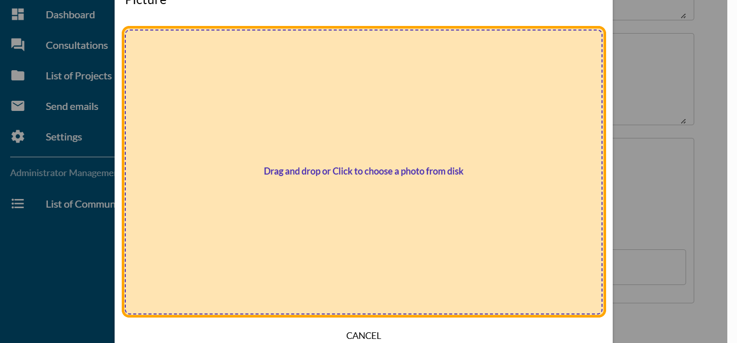 Click on "Drag and drop or Click to choose a photo from disk"