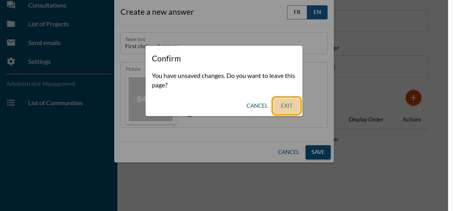 Click on "EXIT"
