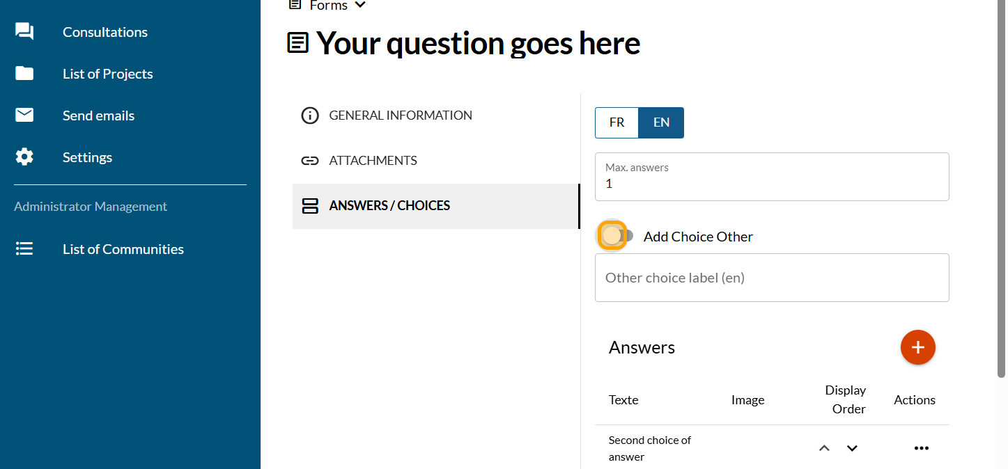 Activate the "Add Choice Other" button if you need it.