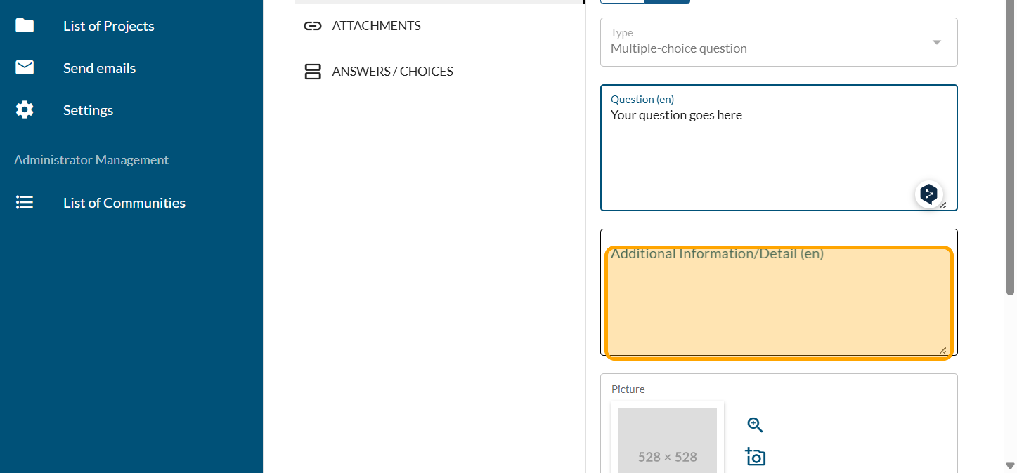 Click on the camera icon to add a photo to the question if you want one