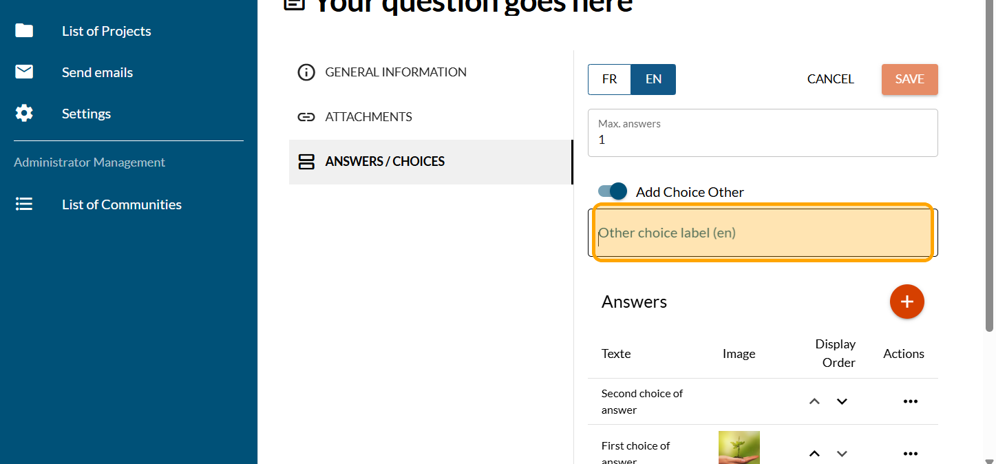Click on "ANSWERS / CHOICES"
