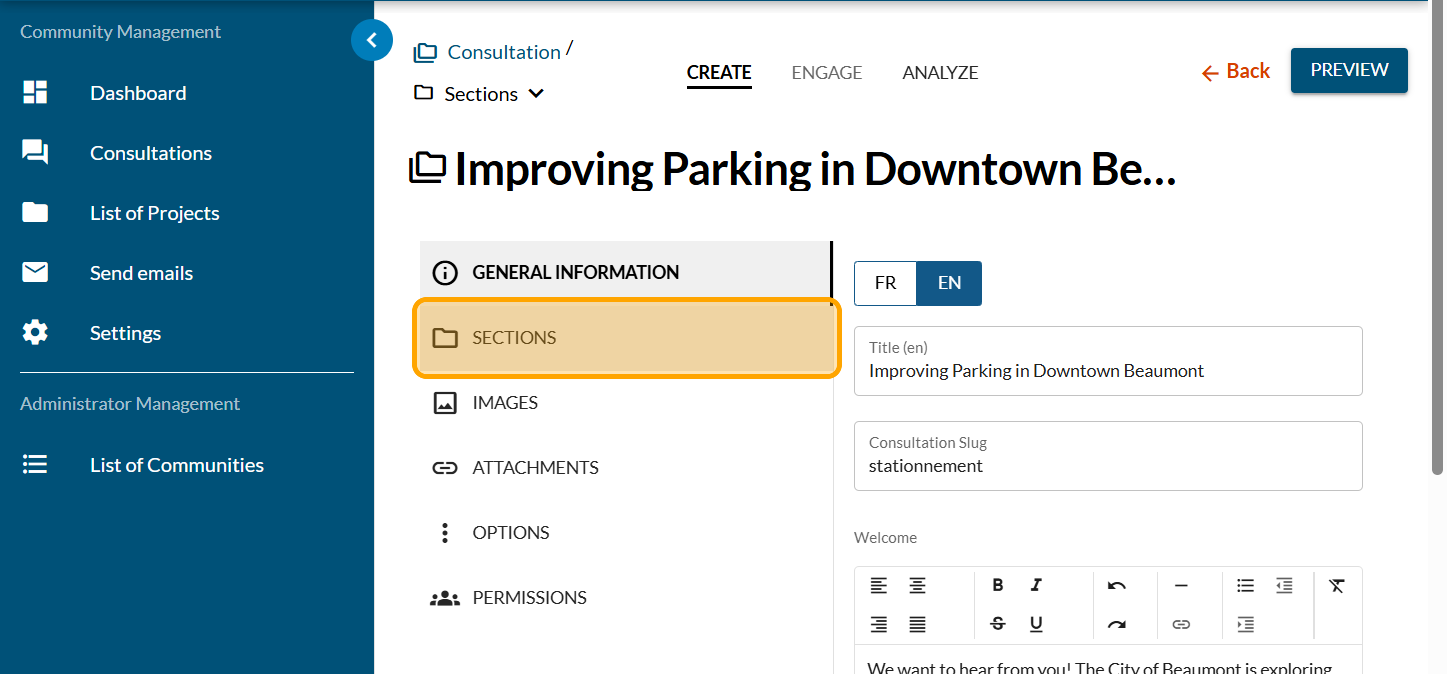 Click on "SECTIONS"