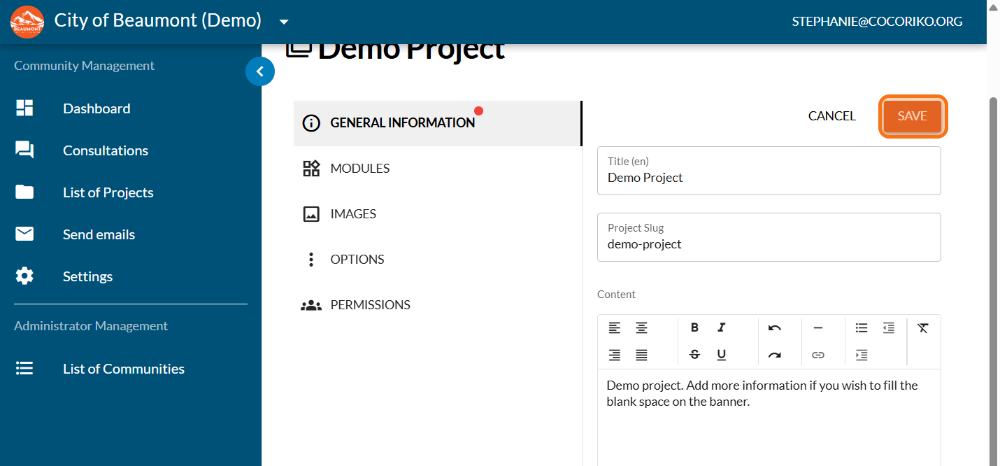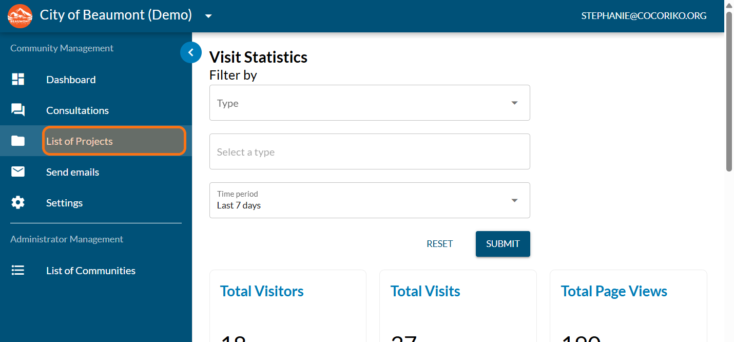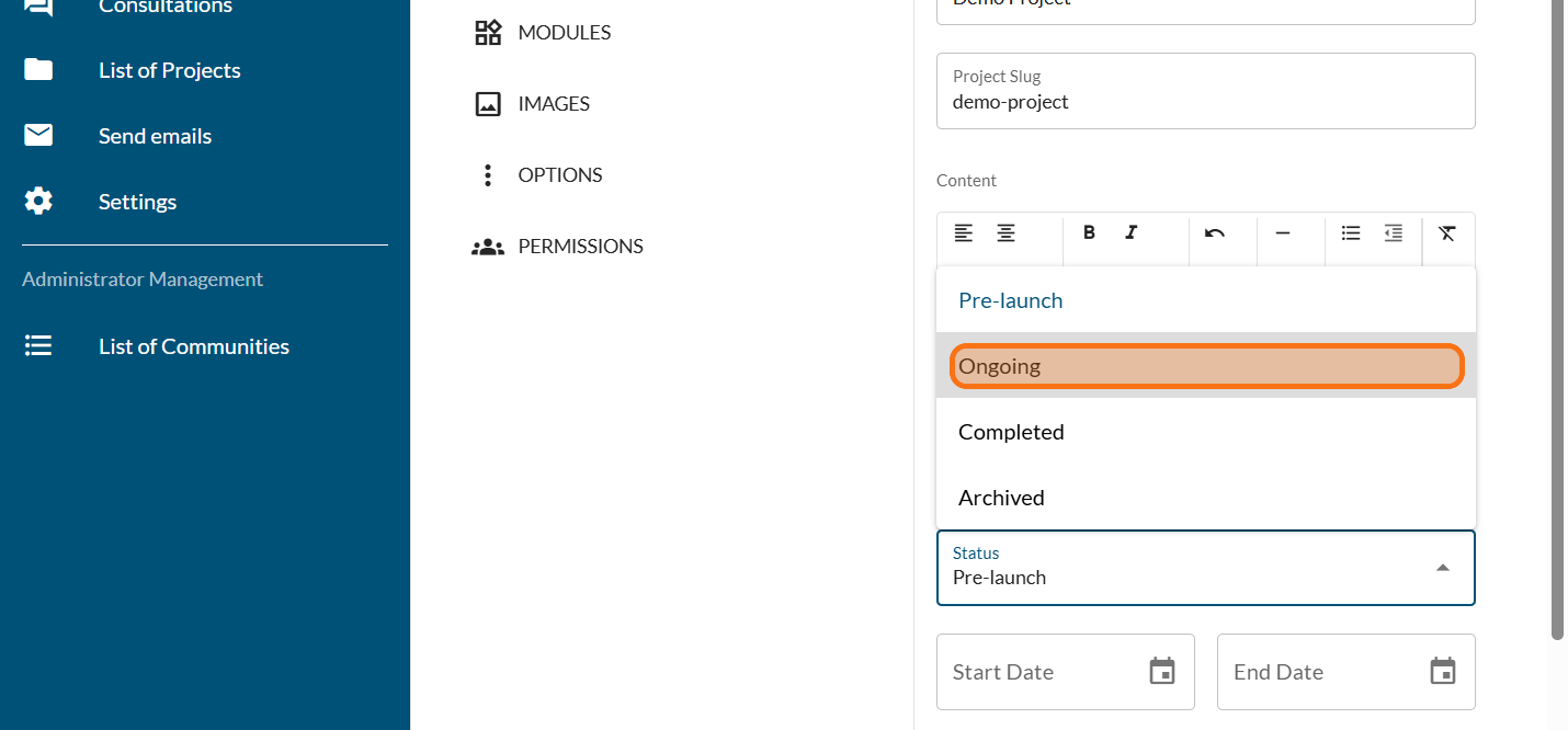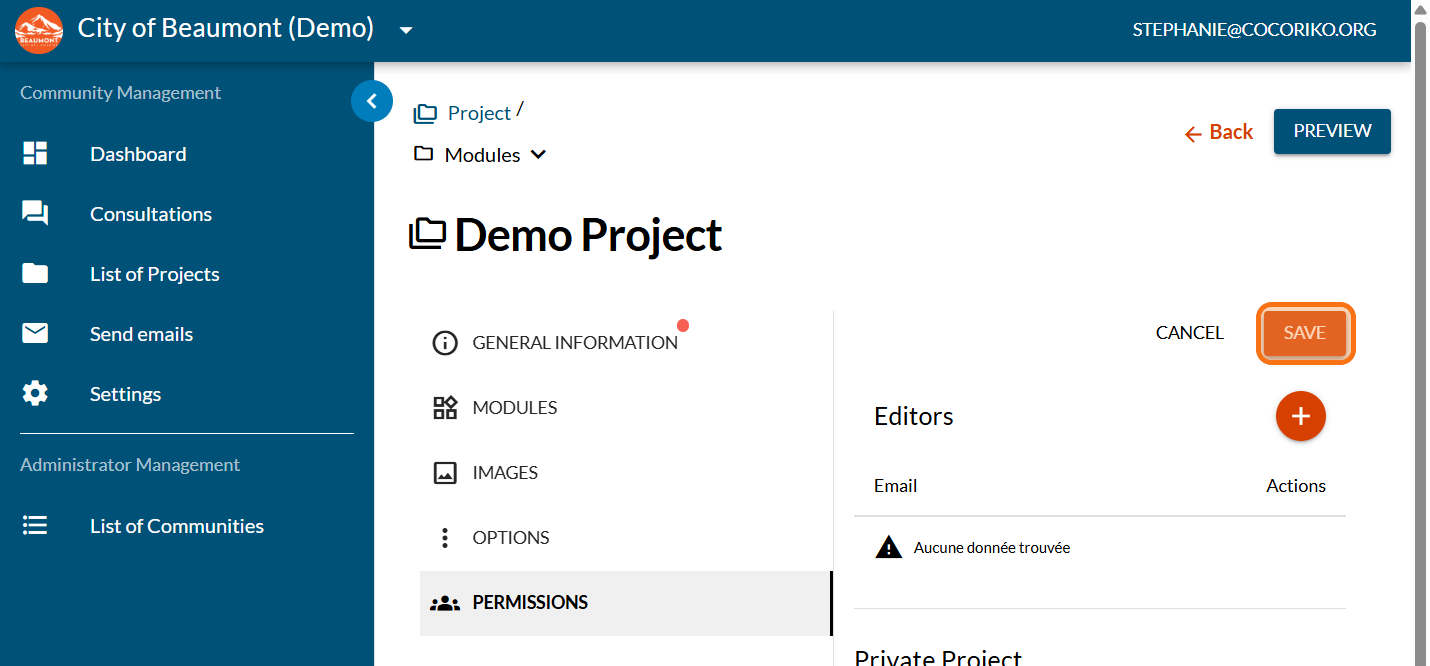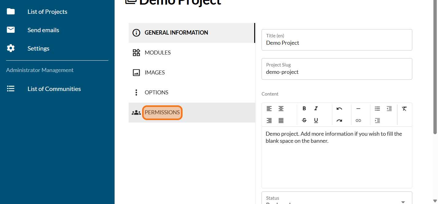 An invitation-only project is accessible only to a group of people you invite. This type of project is also known as a private project. Invitation-only projects are useful for committees, working groups or internal consultations with an organisation’s employees. This mode is also useful for sharing a project that needs to be approved or reviewed by people who are not administrators.