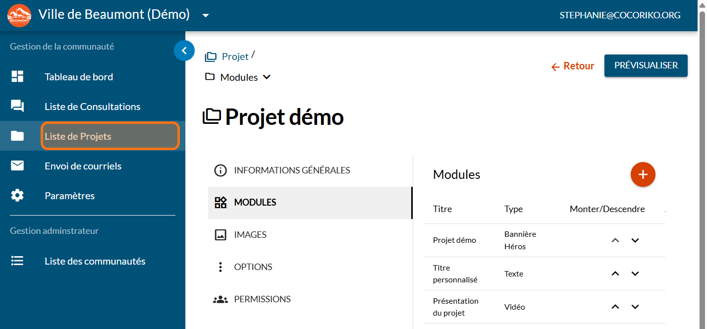 Cliquez sur "Liste de Projets"