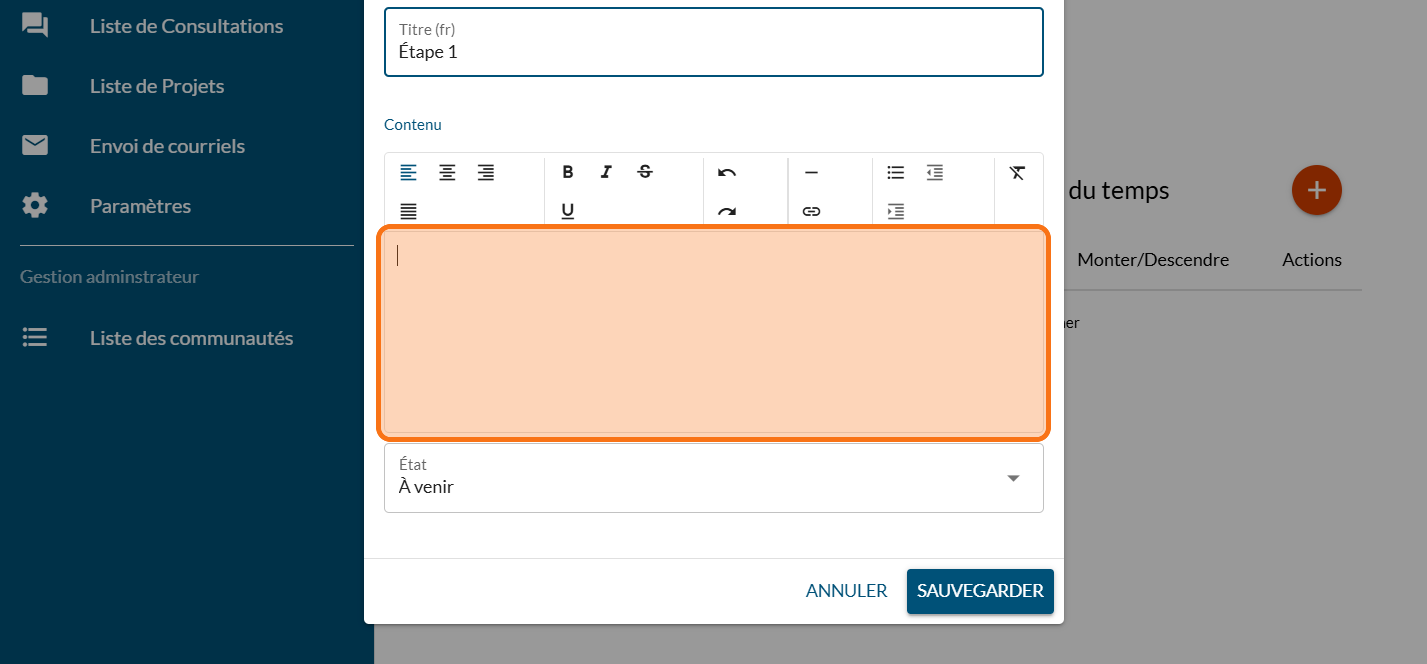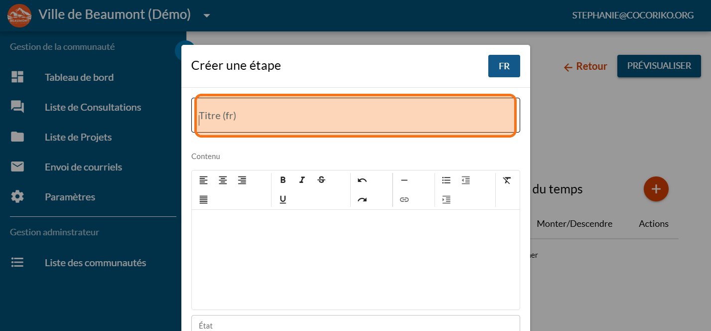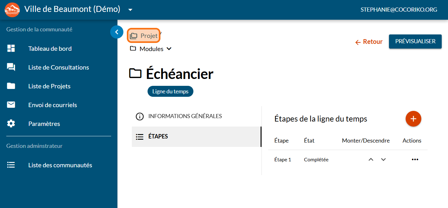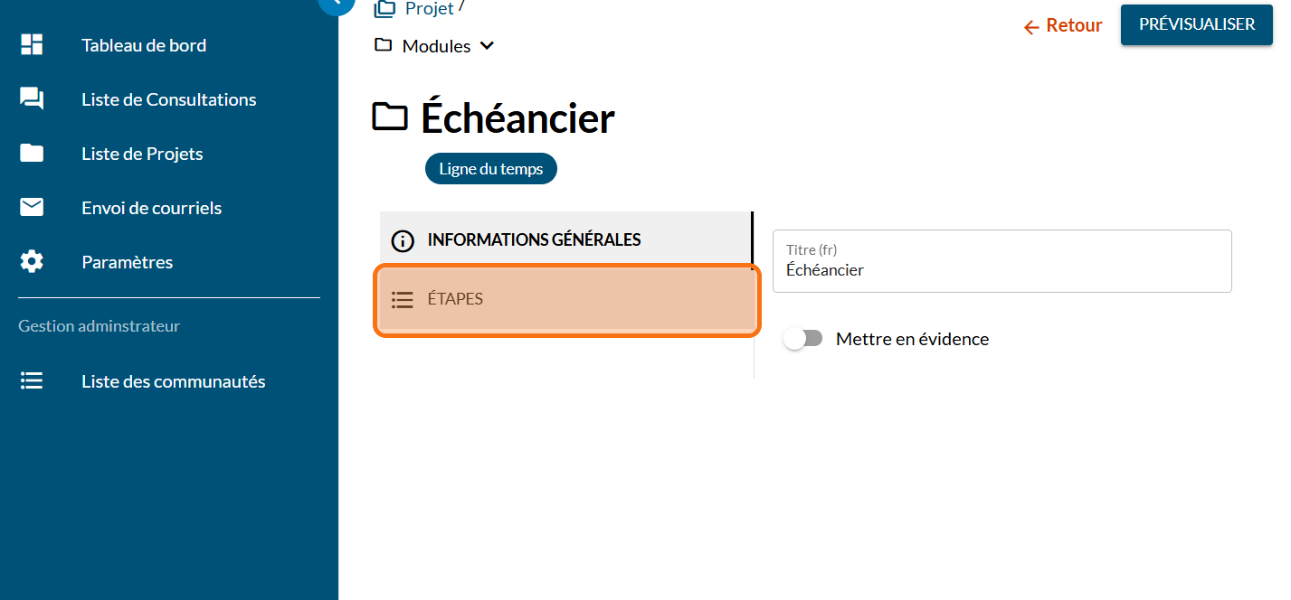Cliquez sur "ÉTAPES"