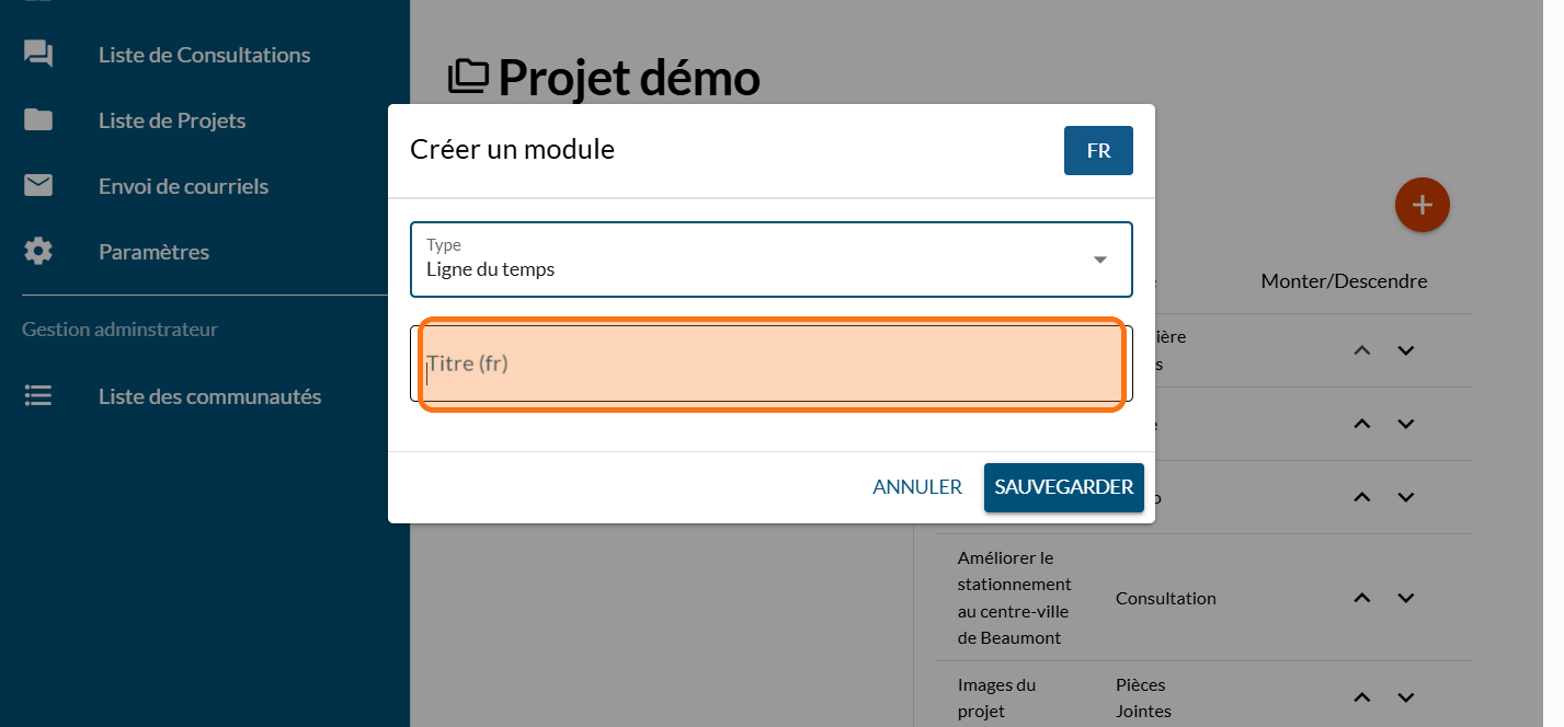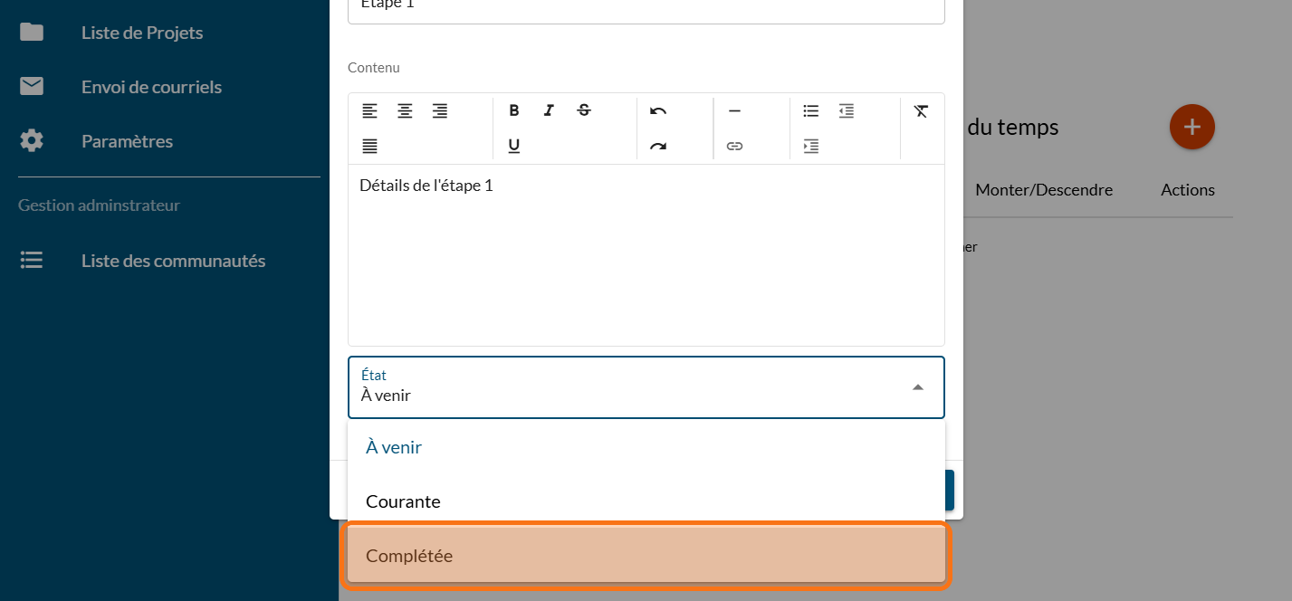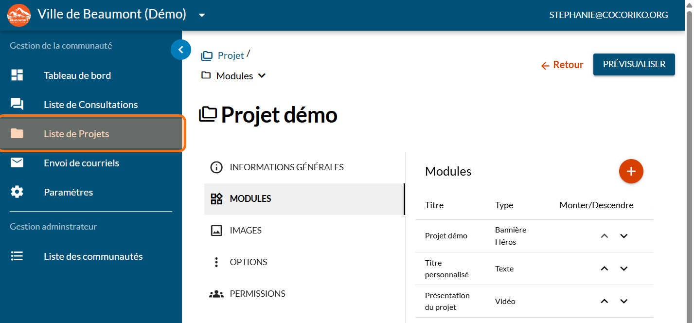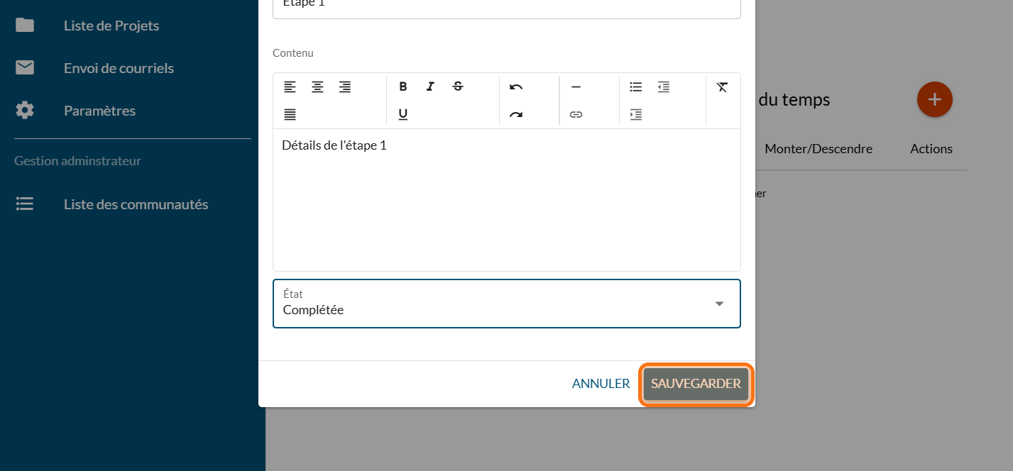 Cliquez sur "Liste de Projets"