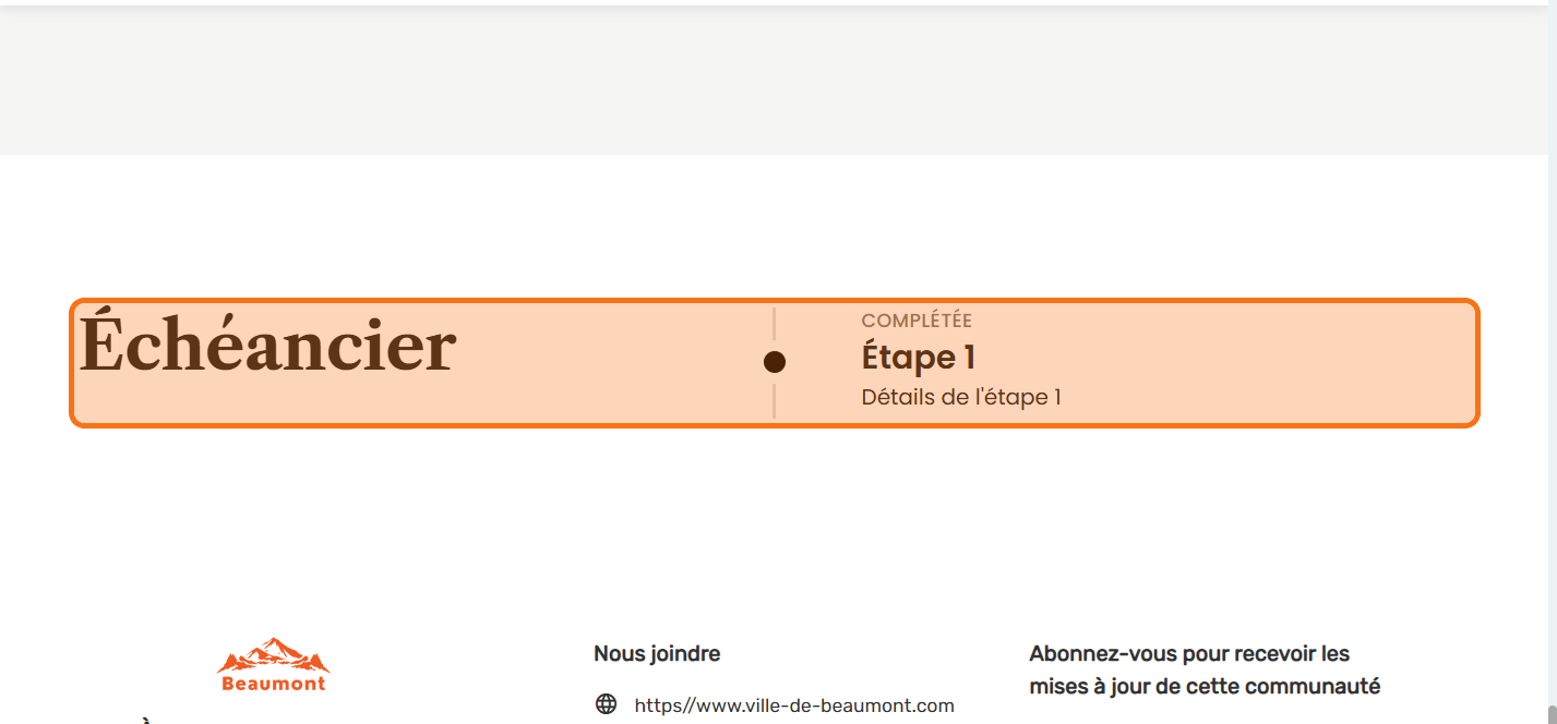 Présentez les étapes ou les échéanciers de votre projet avec ce module.