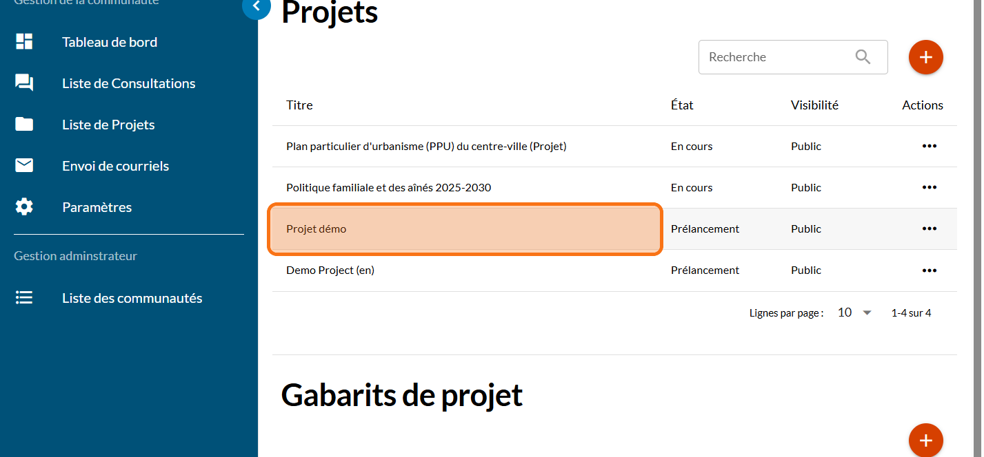Cliquez sur votre projet