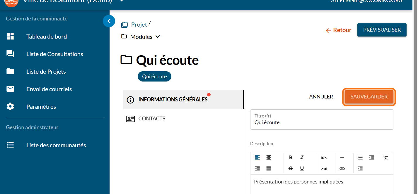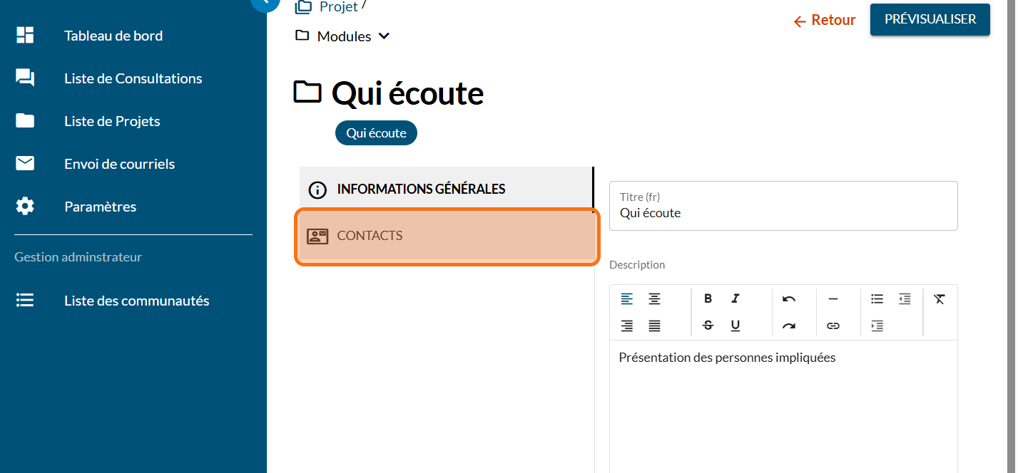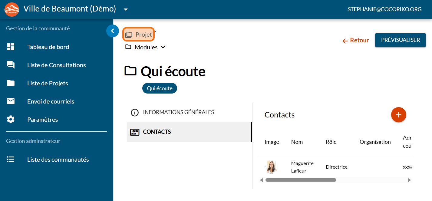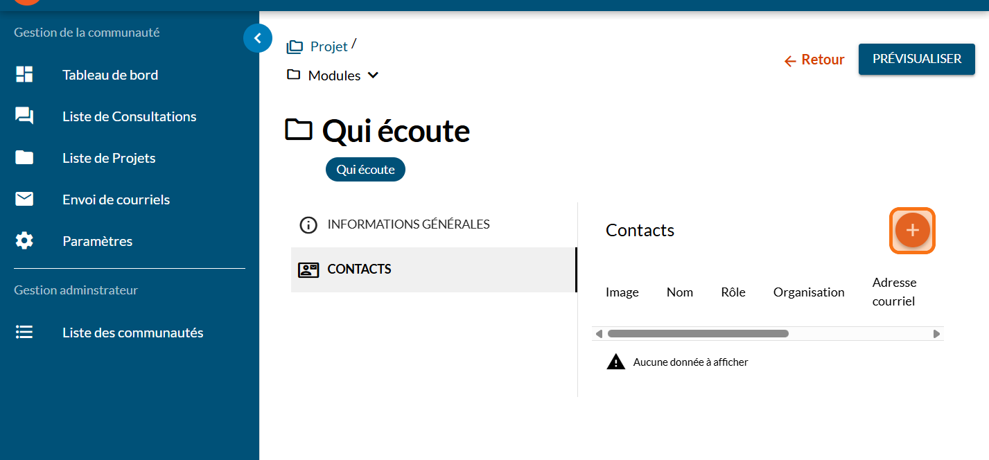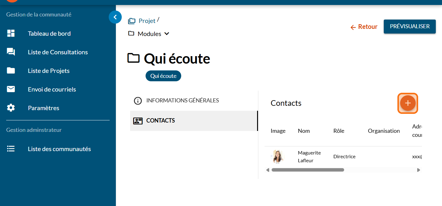 Indiquez à votre communauté les personnes qui sont impliquées dans ce projet et la manière de la contacter.