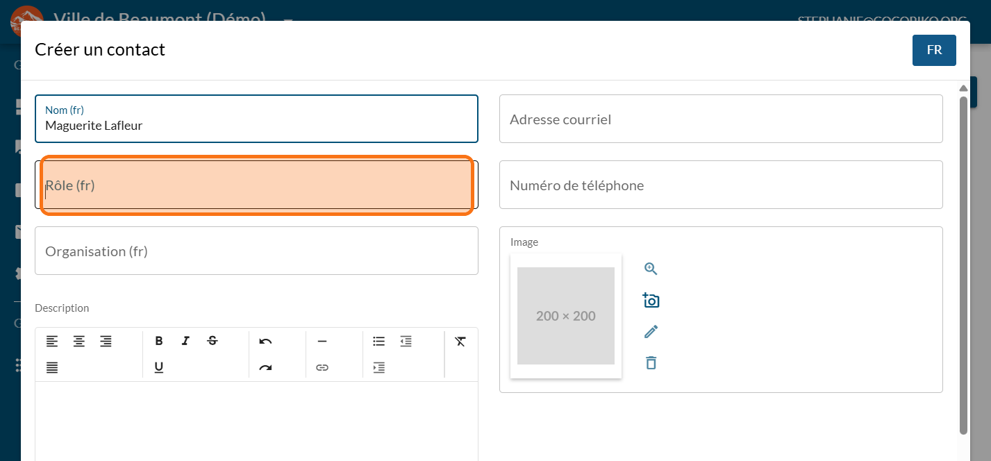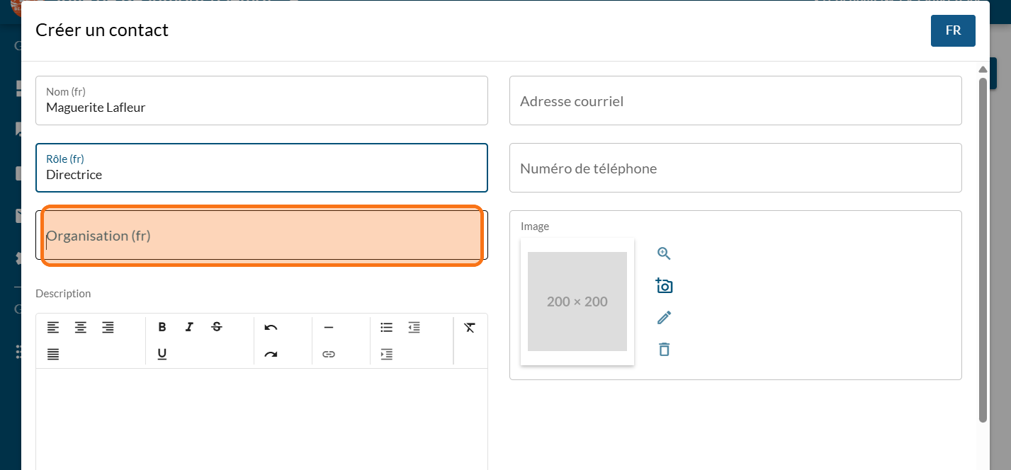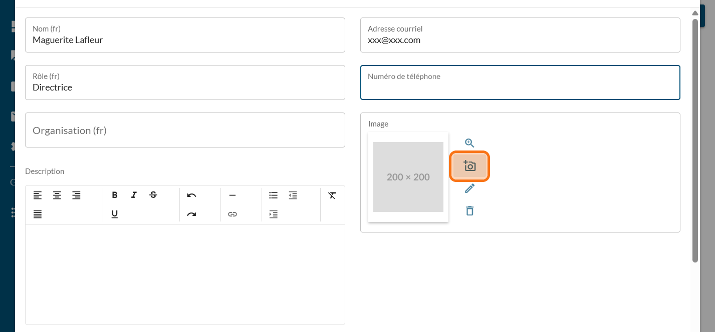 Cliquez sur l'icone d'appareil photo pour ajouter une photo (optionnel)