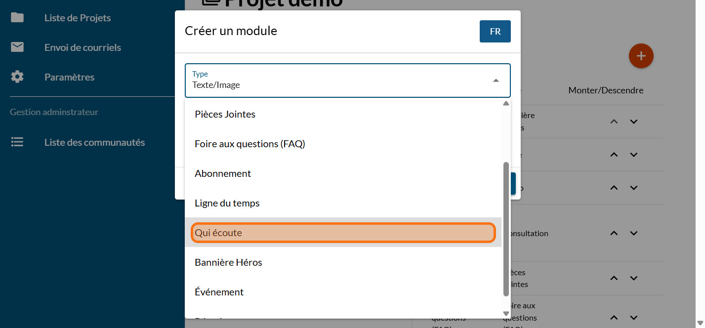 Cliquez sur le signe PLUS pour ajouter un nouveau module