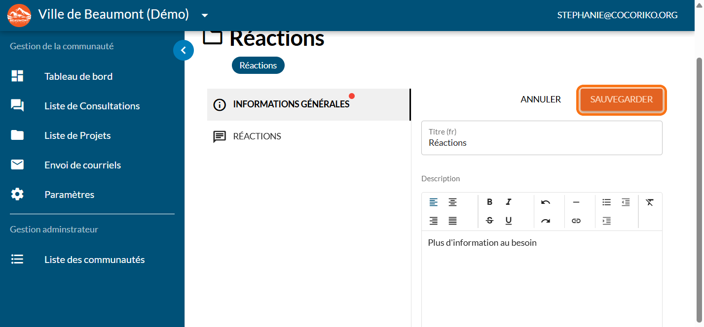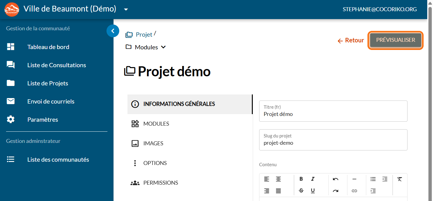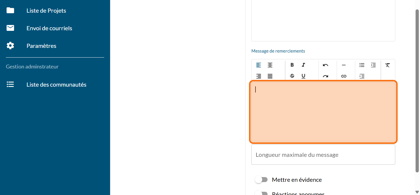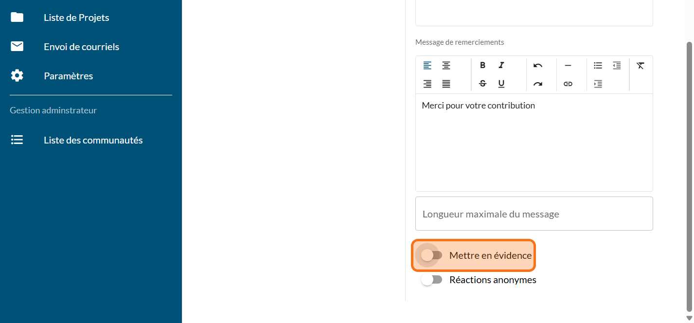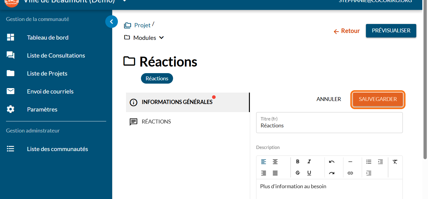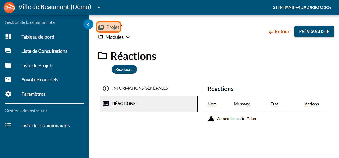 Dans le cas où votre projet n'héberge pas de consultations, ce module permet de recueillir les commentaires directement sur la page de projet.