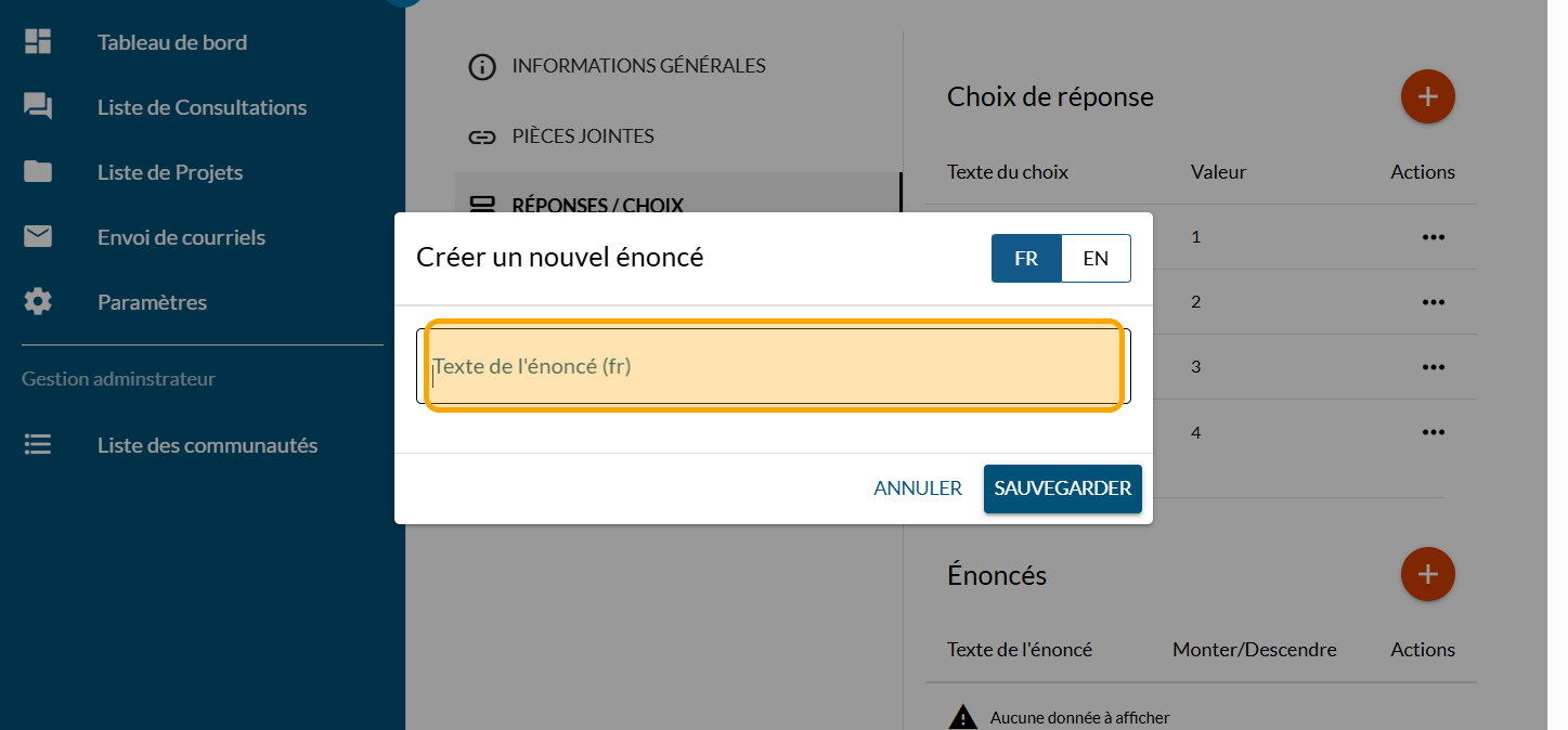 Tapez votre premier énoncé