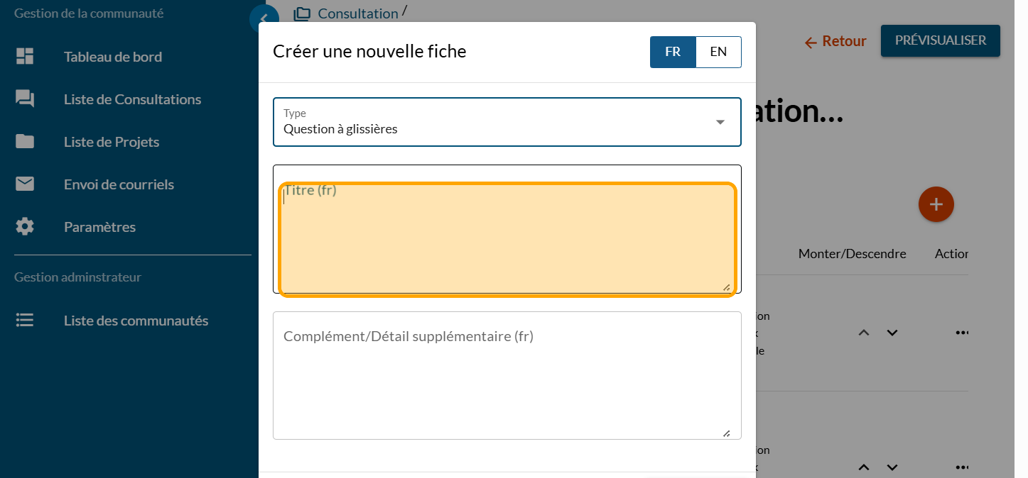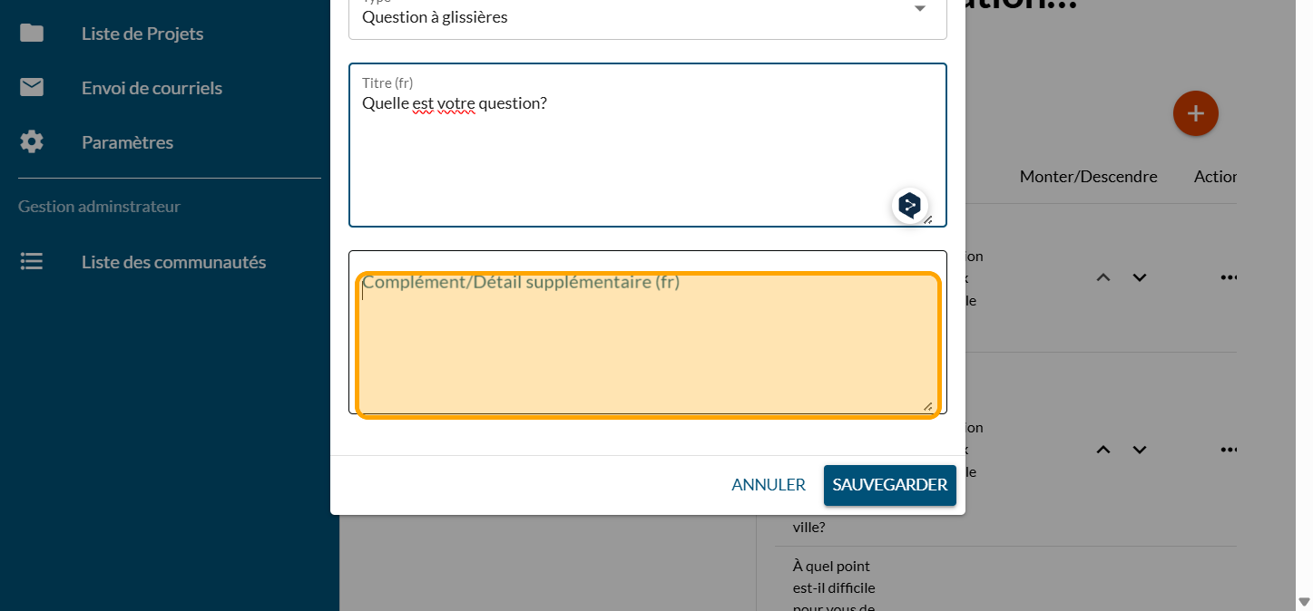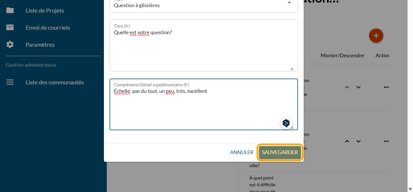 Ajouter une question à glissière
