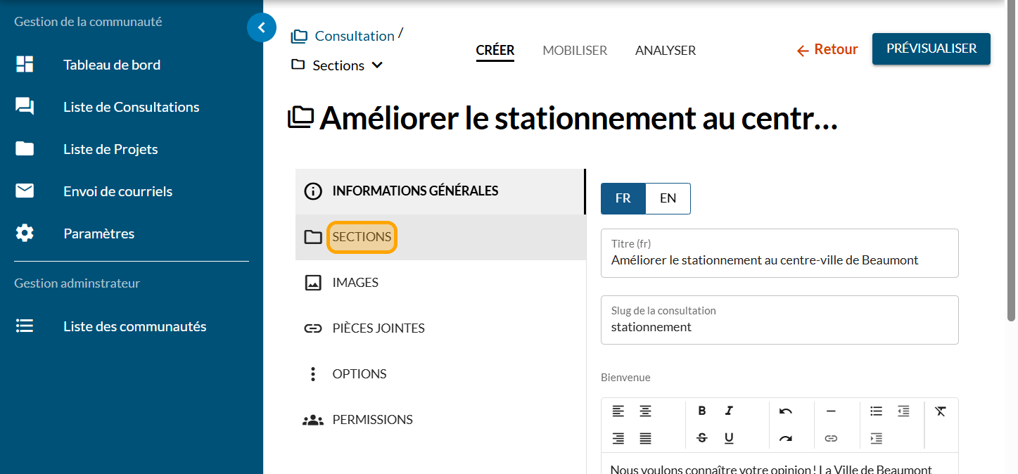 Cliquez sur "SECTIONS"
