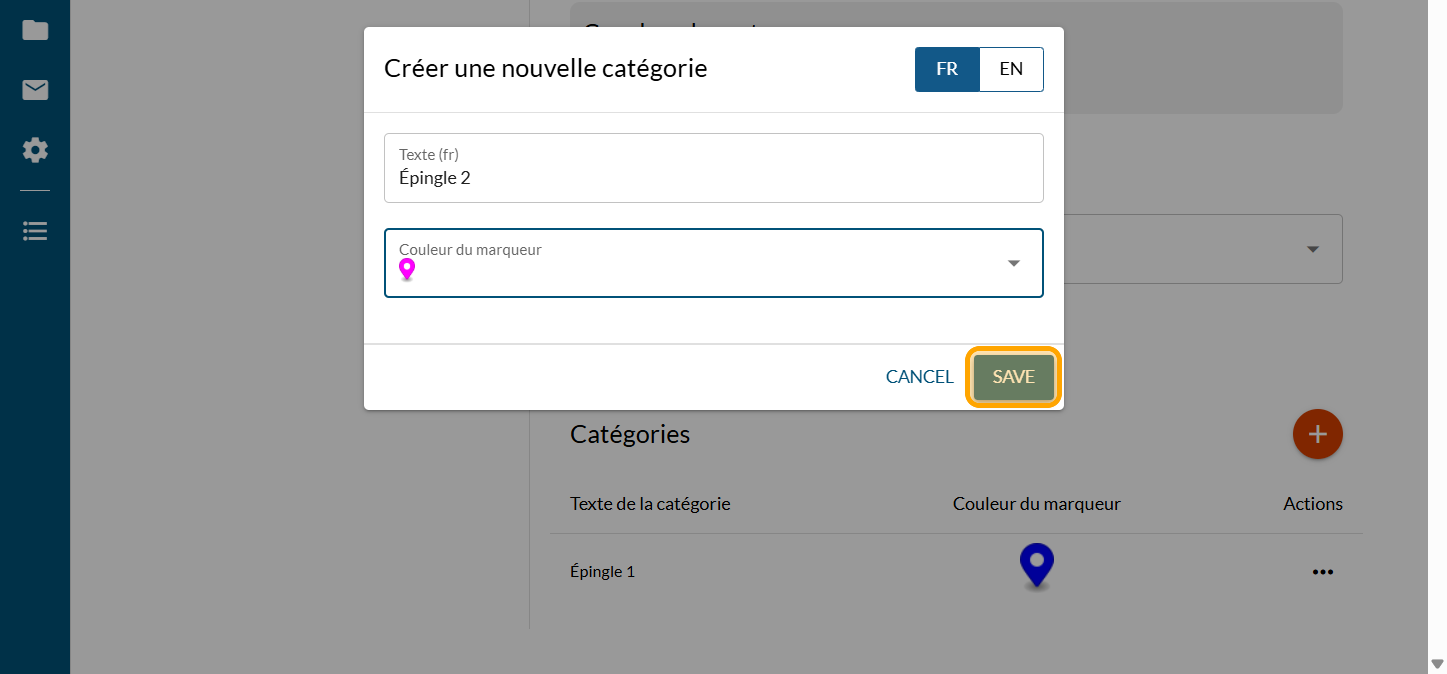 Tapez le texte de votre catégorie et cliquez sur "ENREGISTRER"