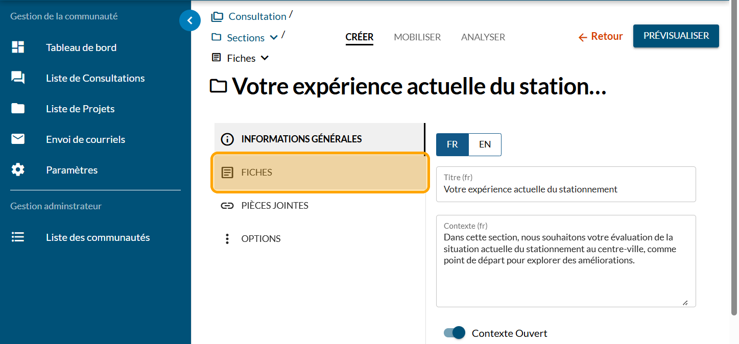 Cliquez sur "FICHES"