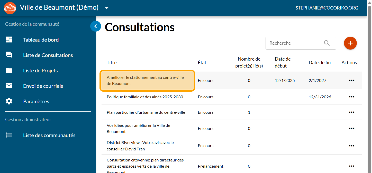 Cliquez sur "Liste de Consultations"