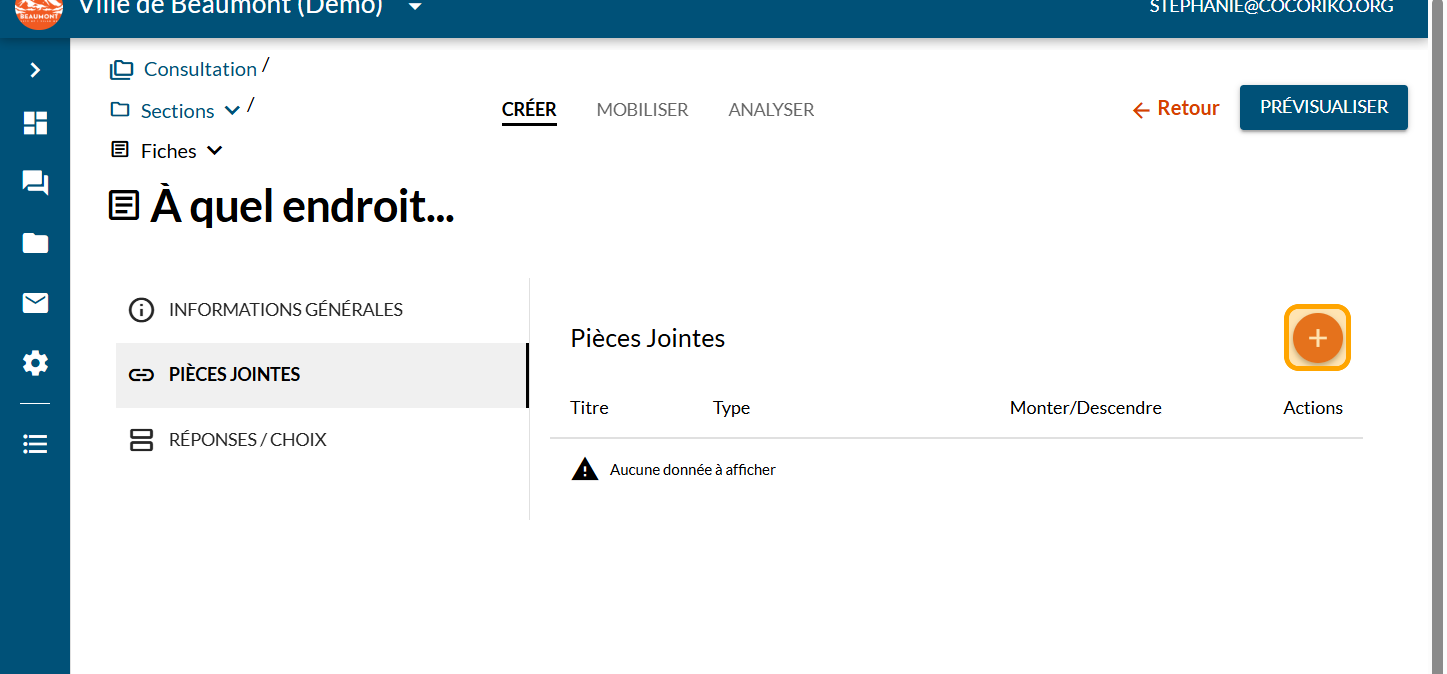 Cliquez sur le signe PLUS pour ajouter une nouvelle pièce jointe