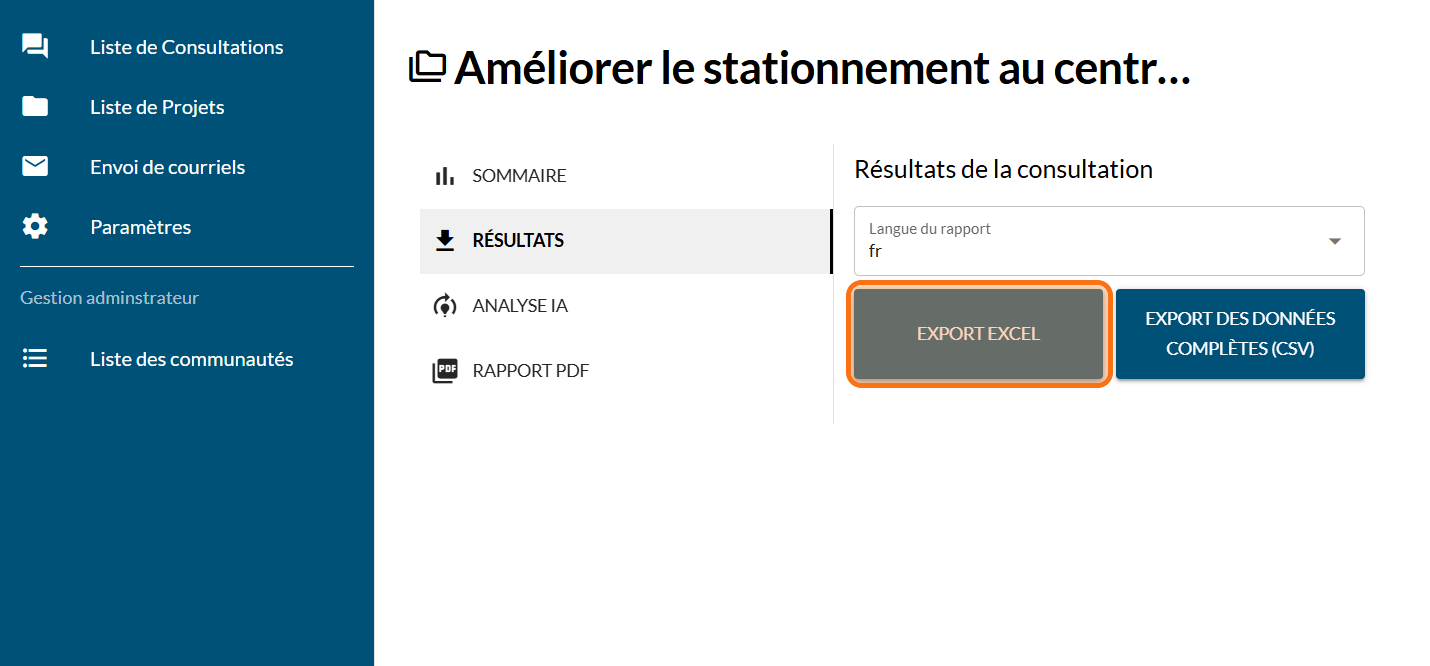 Cliquez sur "EXPORT EXCEL"