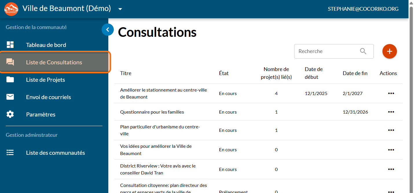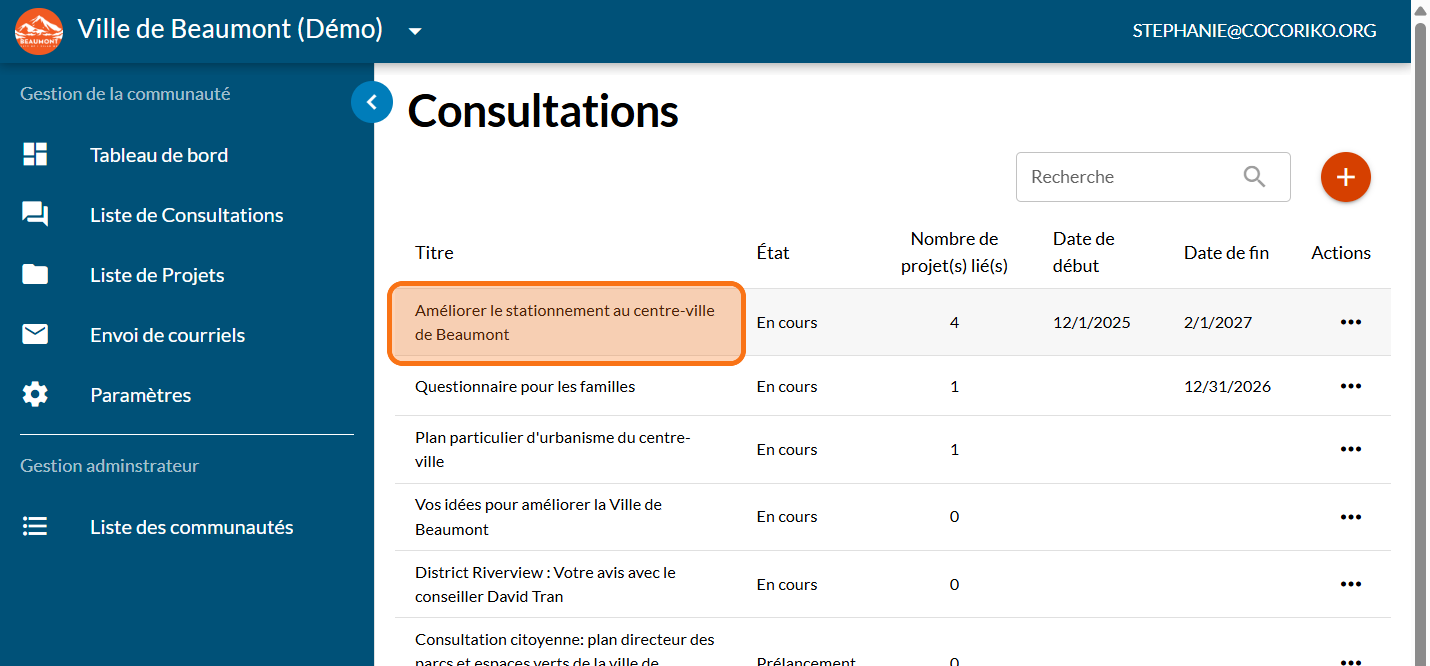 Cliquez sur "Liste de Consultations"