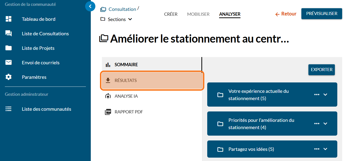 Cliquez sur "RÉSULTATS"