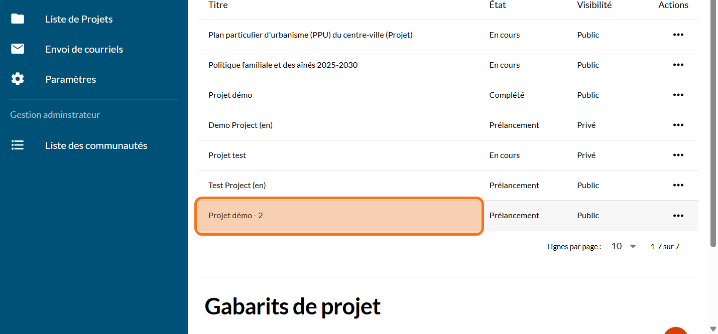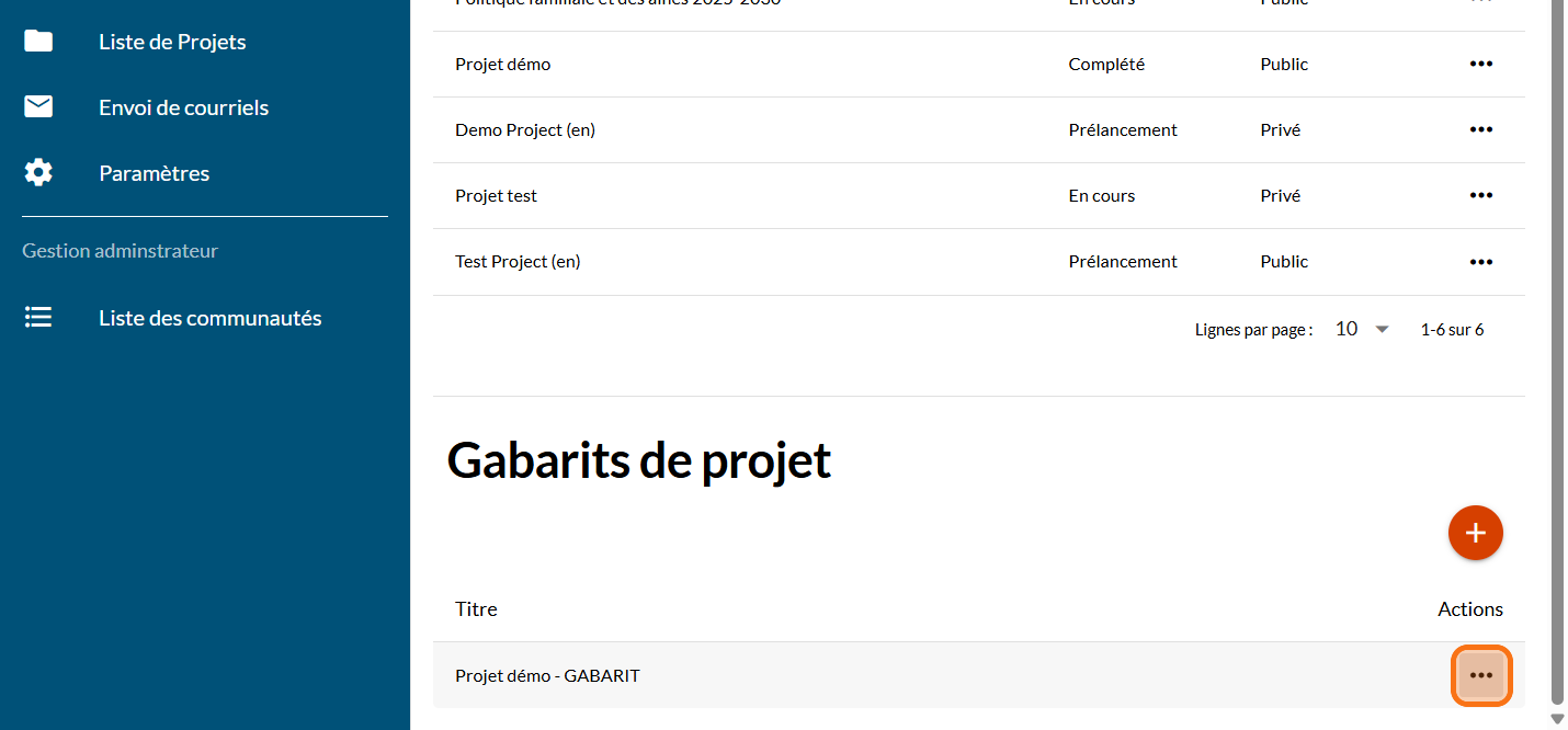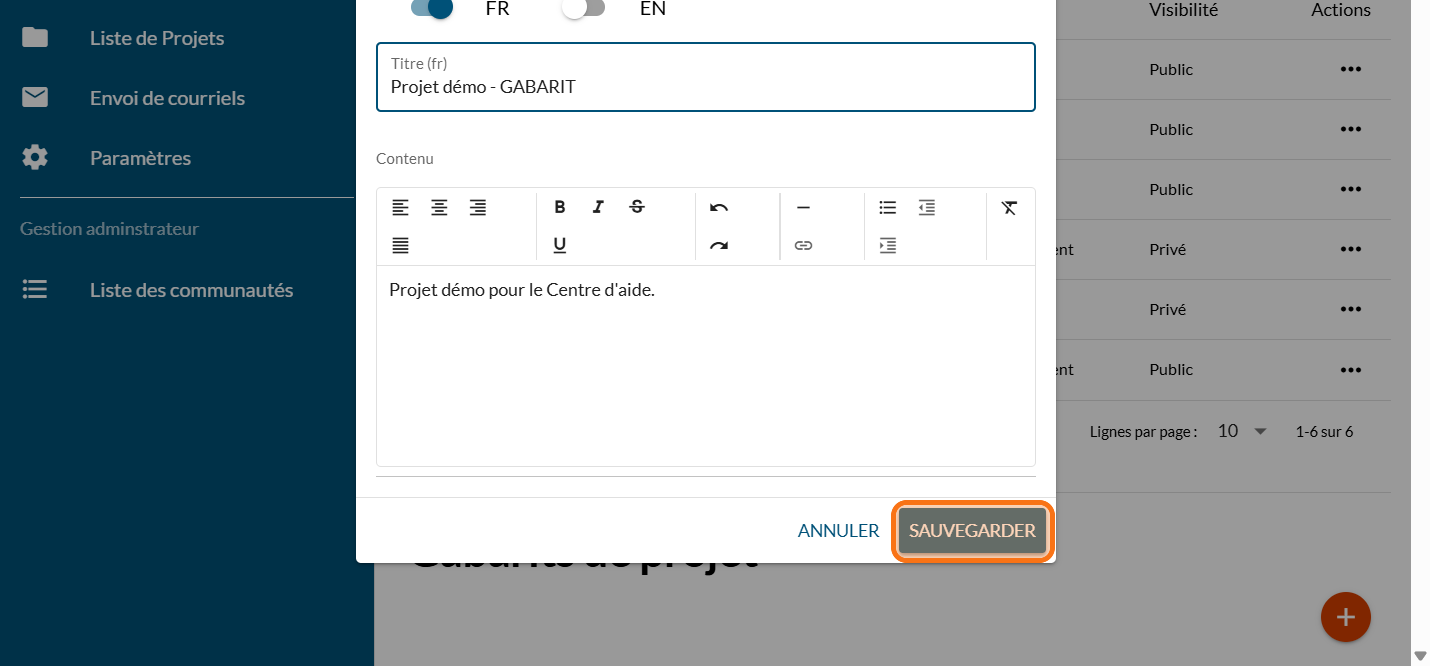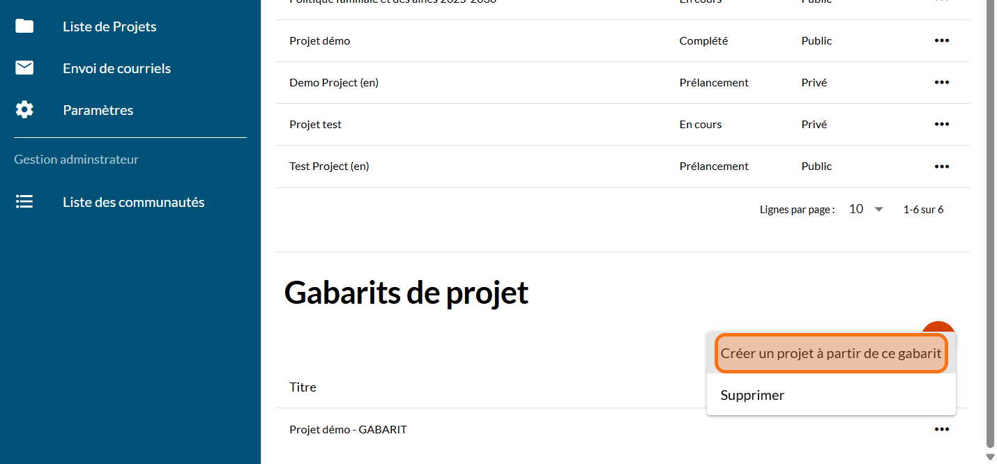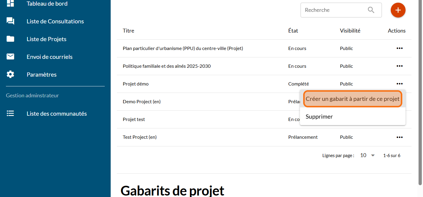 Cliquez sur "Créer un gabarit à partir de ce projet"