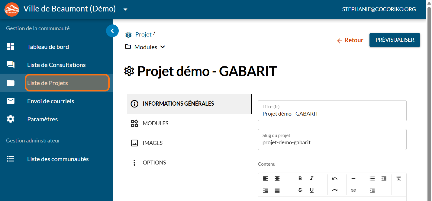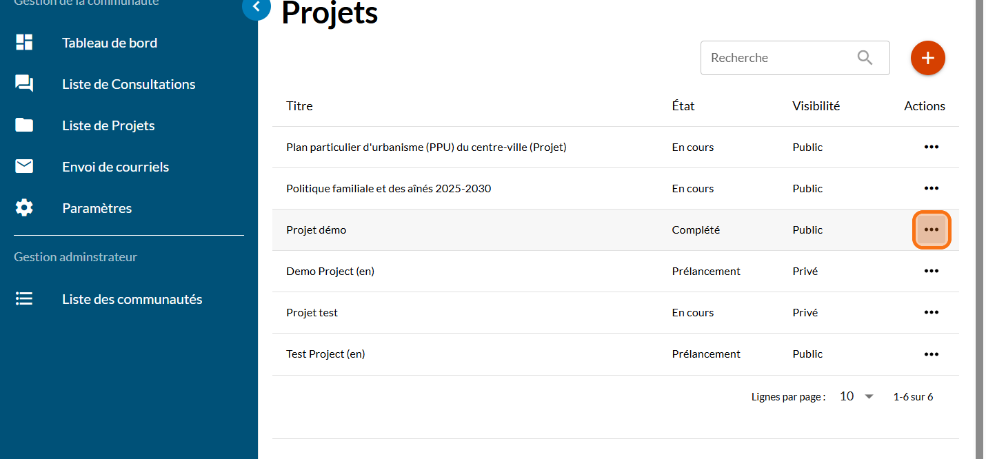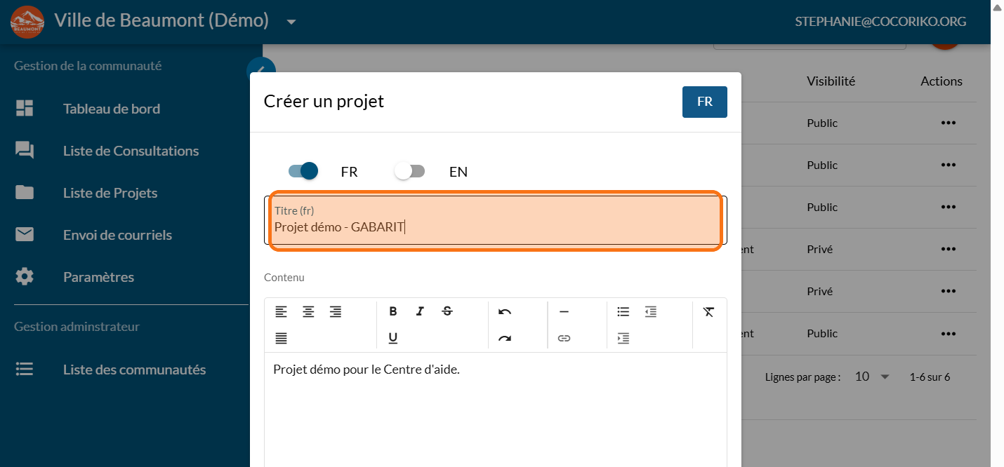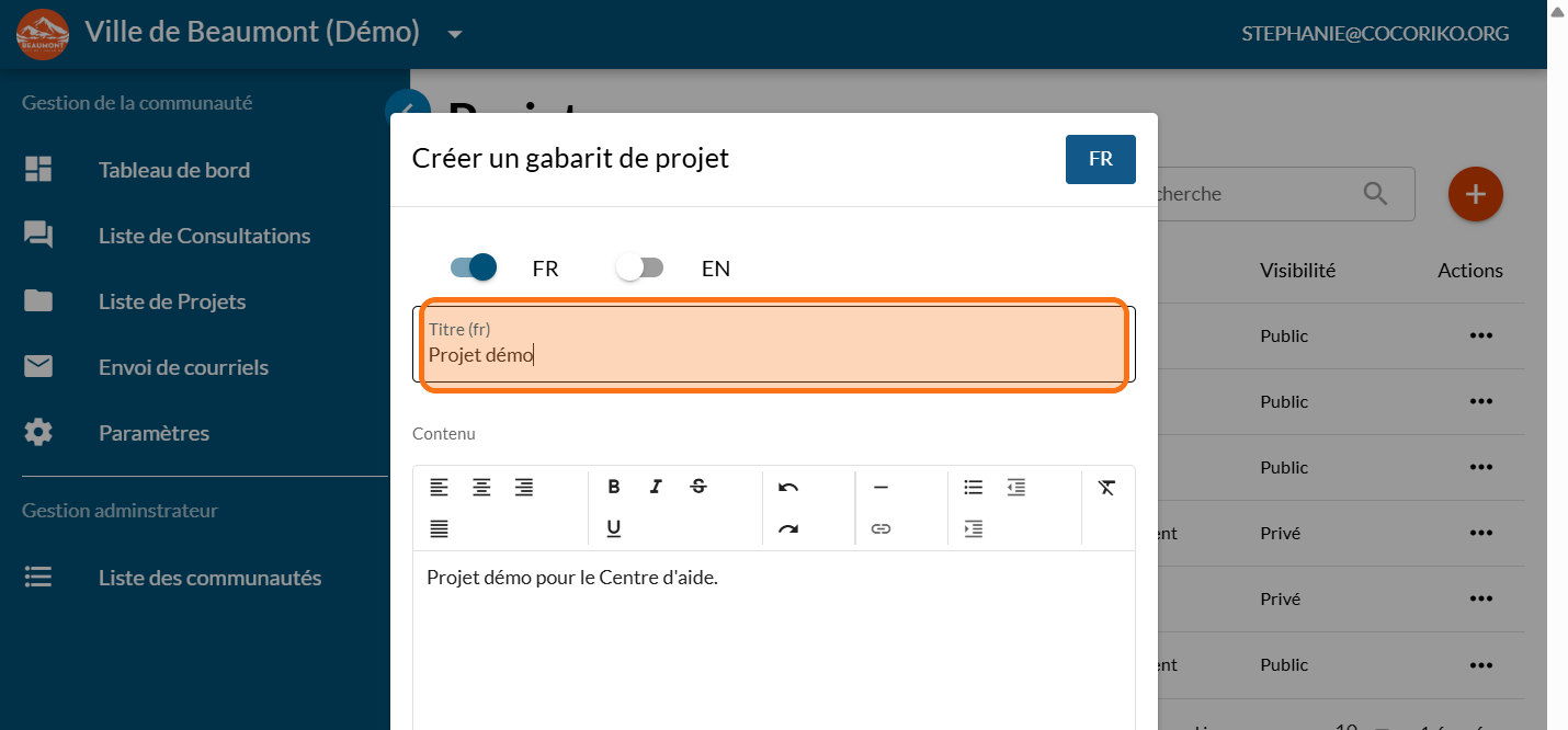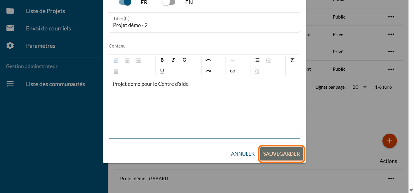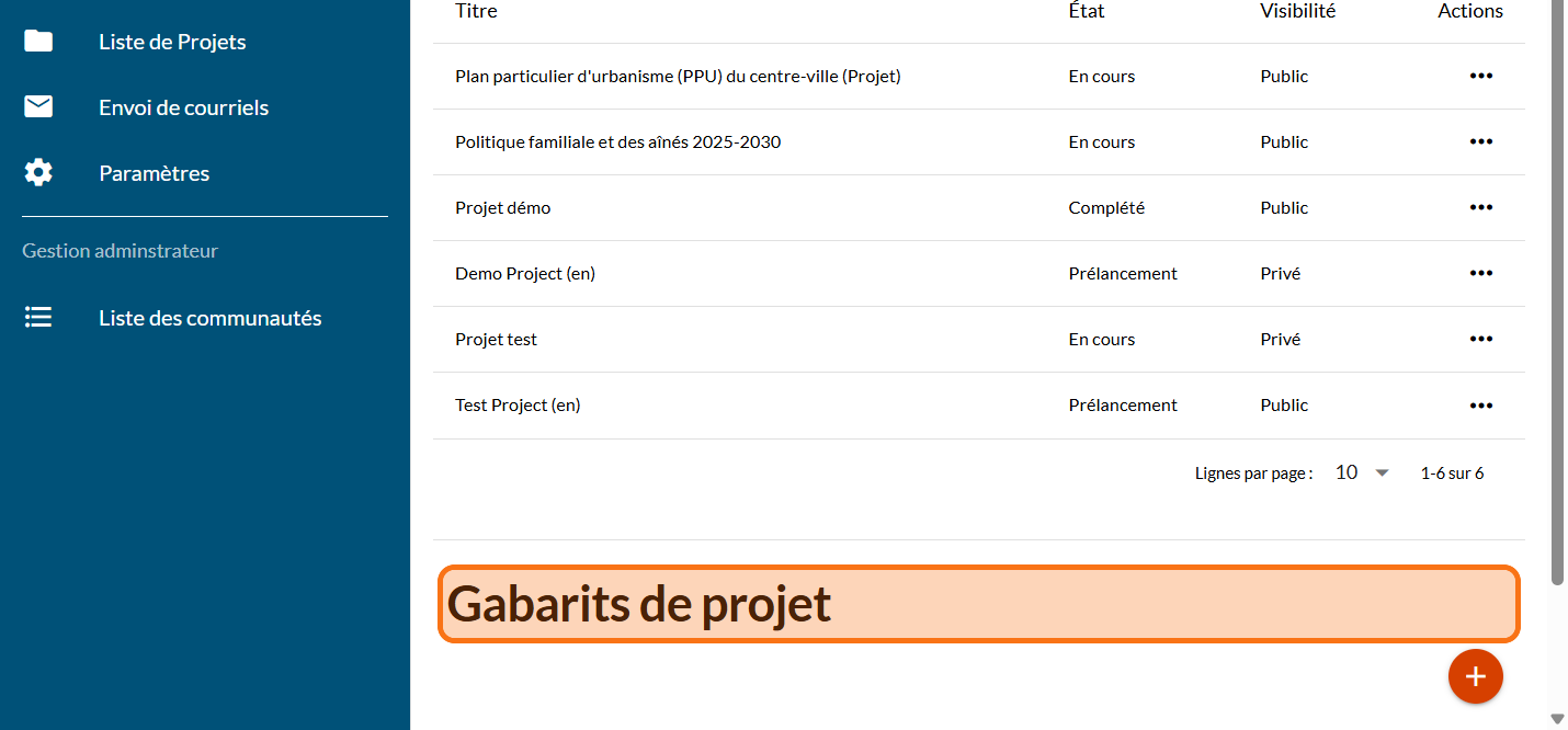 Cliquez sur "Créer un gabarit à partir de ce projet"