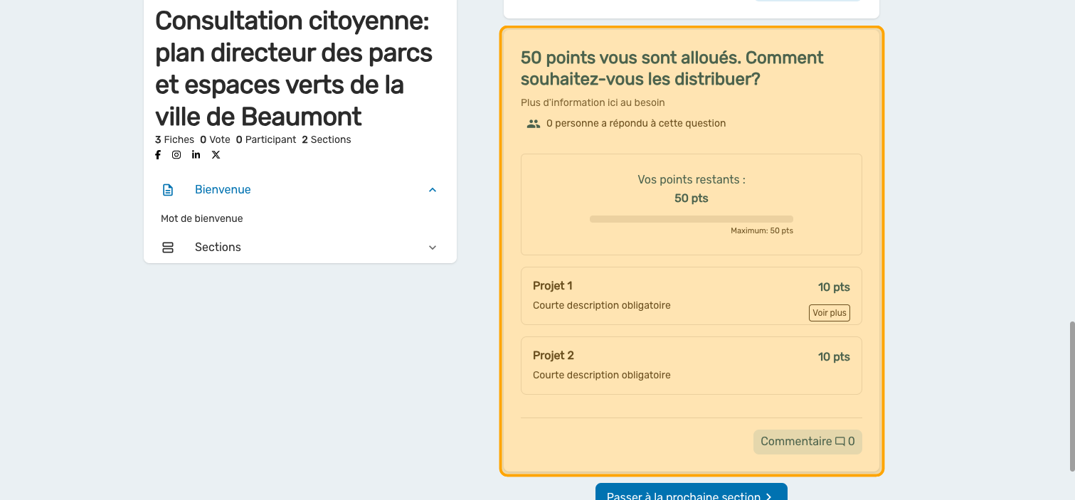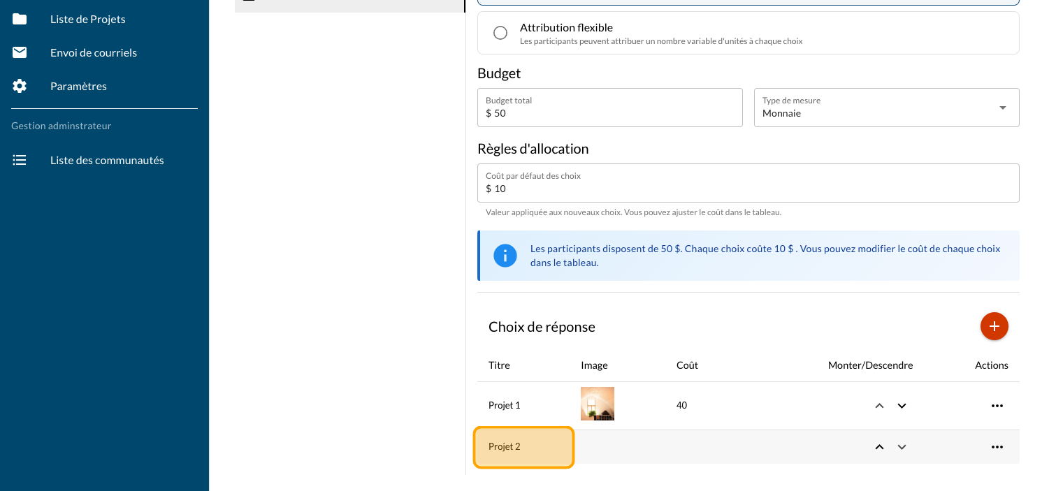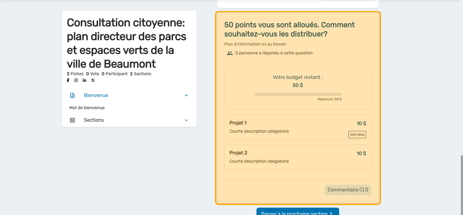 La question Vote par pointage peut être programmée avec des valeurs de choix fixes ou variables. Ce guide vous donne les étapes pour des valeurs fixes. Consultez cet article pour plus d'information.