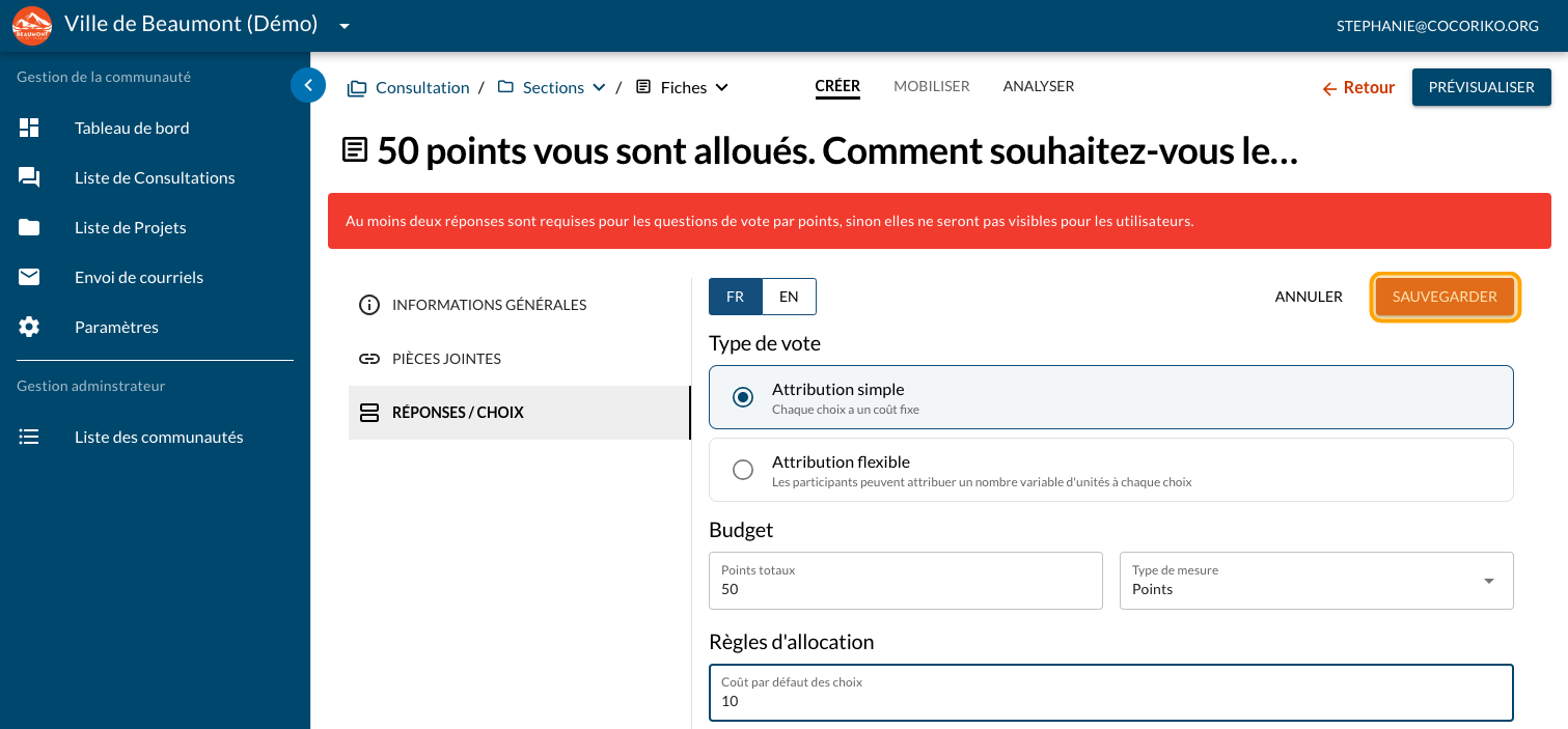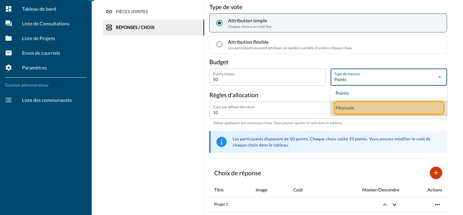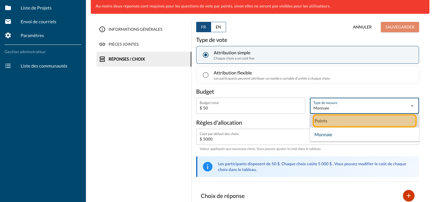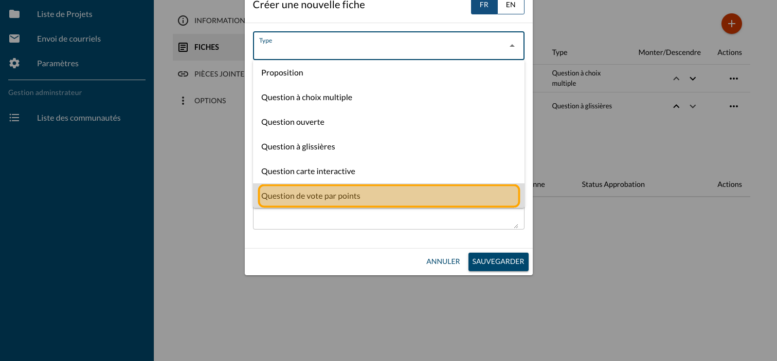 Cliquez sur "Question de vote par points"