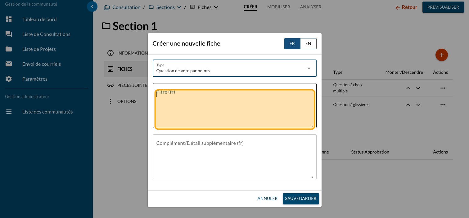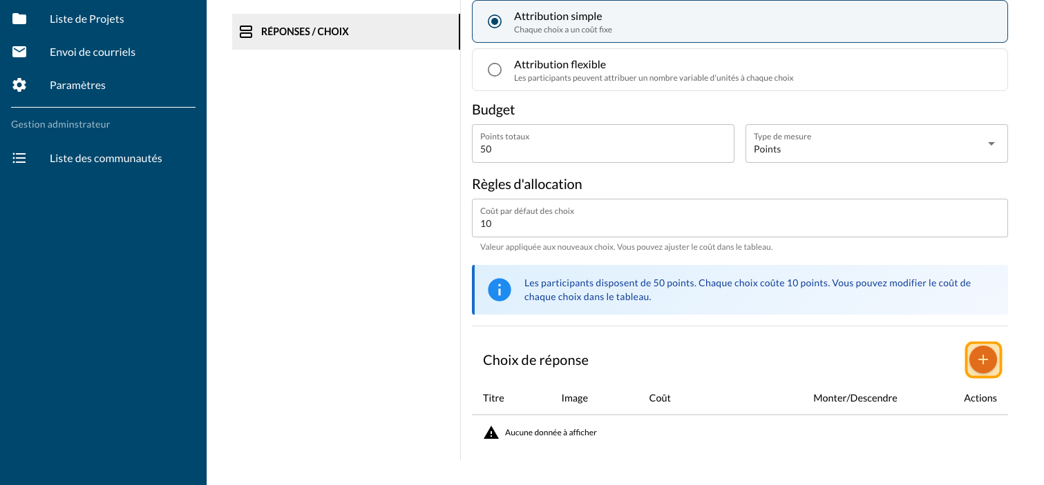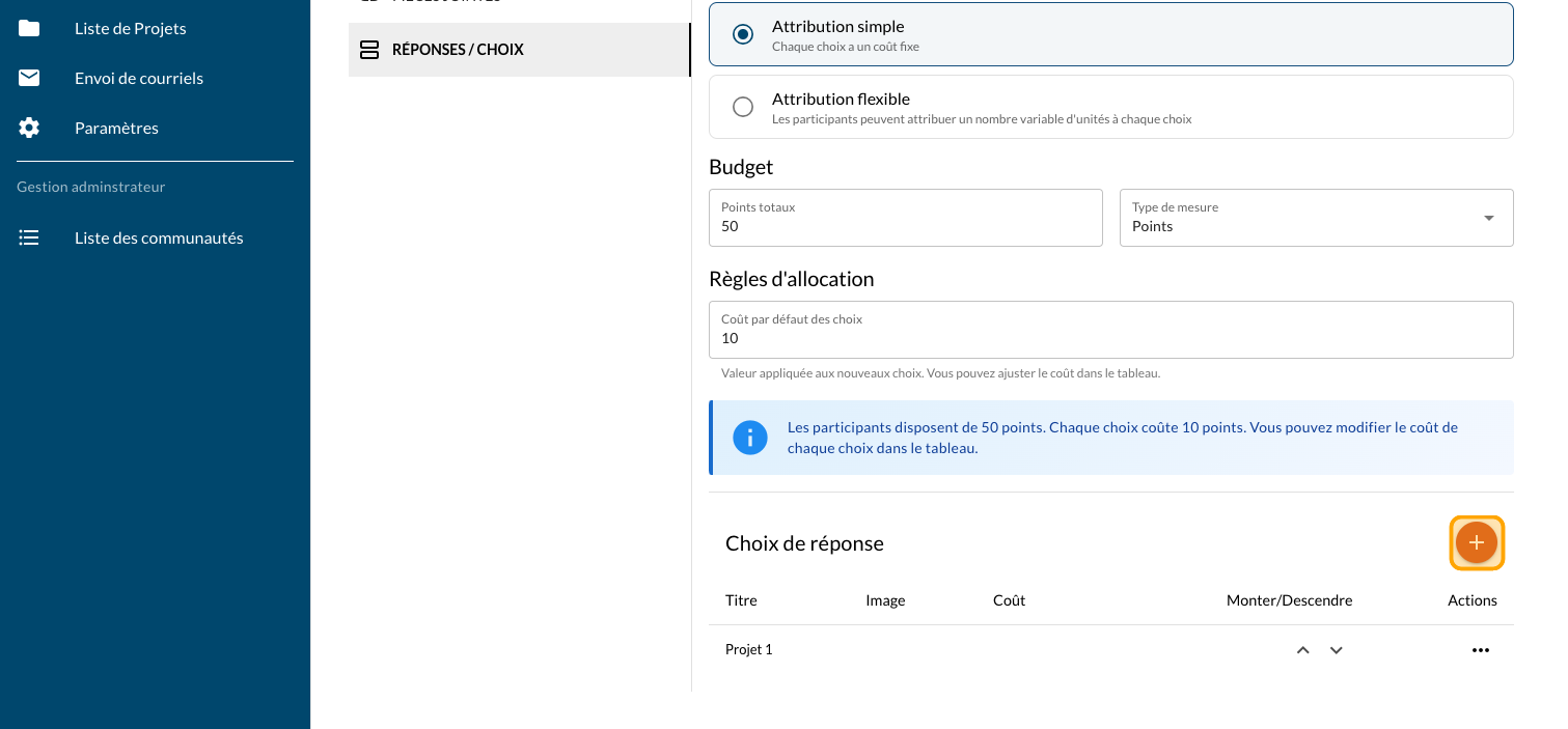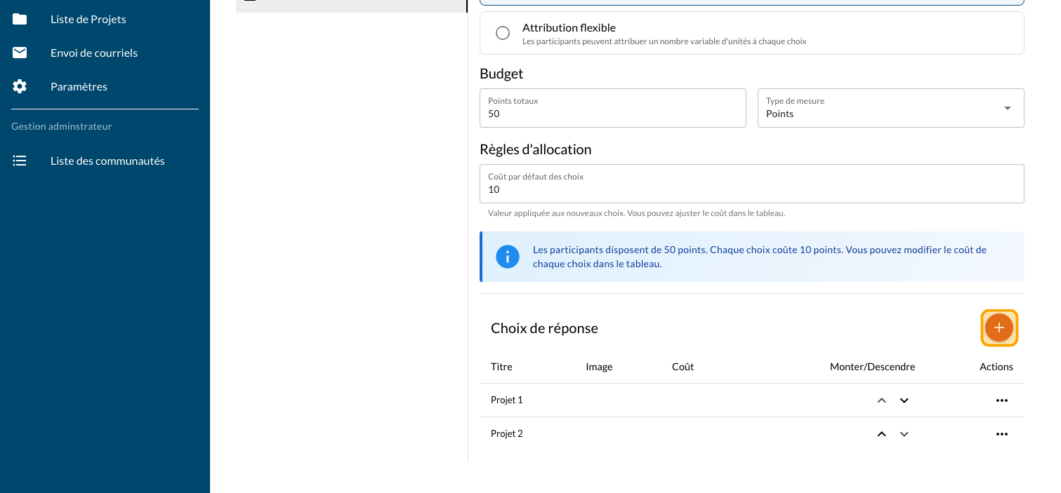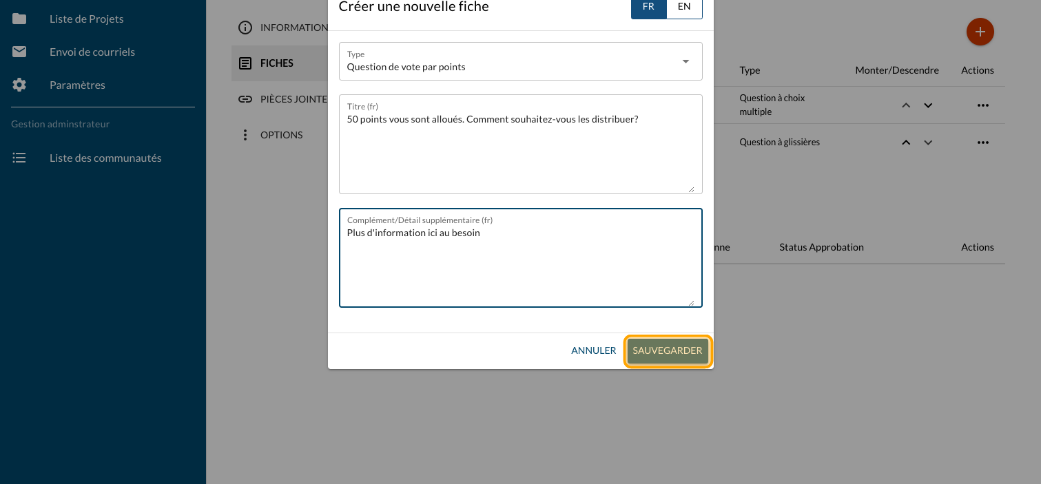 Ajouter une question Vote par pointage - Fixe