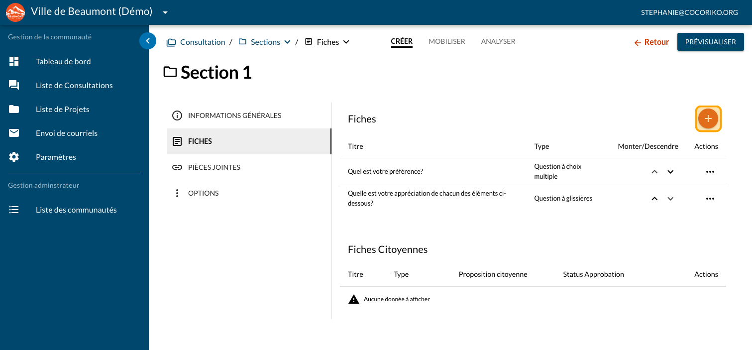 Cliquez sur la section où vous voulez ajouter une nouvelle question
