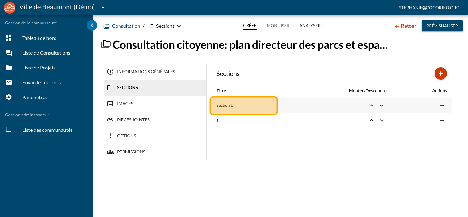 Cliquez sur "SECTIONS"