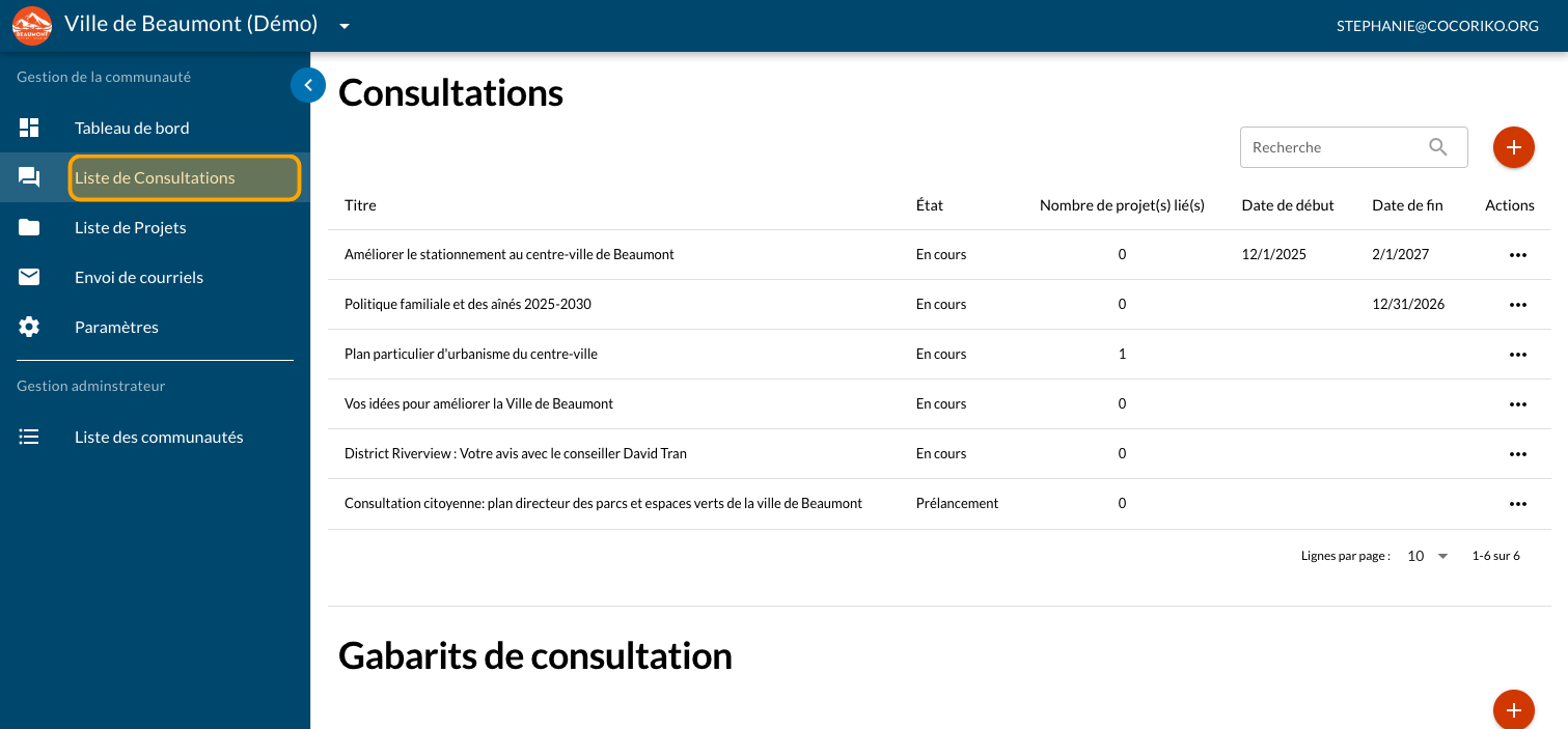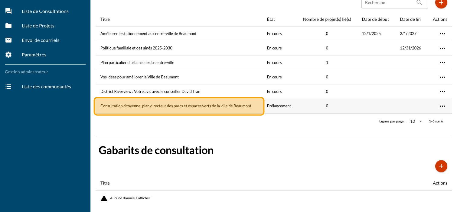 Retournez dans l'interface d'administration pour ajouter les autres projets